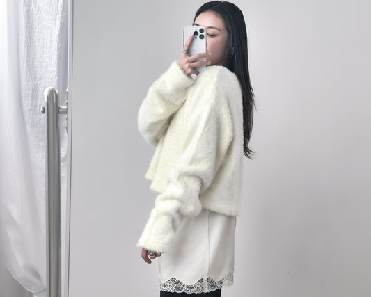 海馬毛混紡圓領薄外套 淺黃色