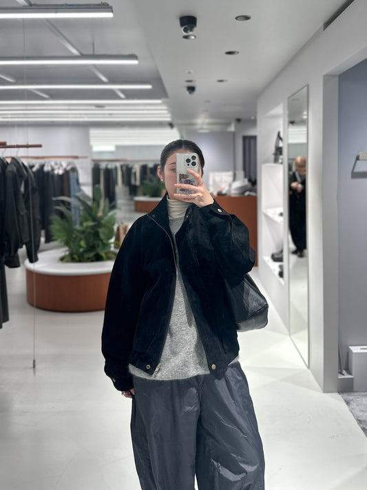 立體感企領麂皮外套 黑色
