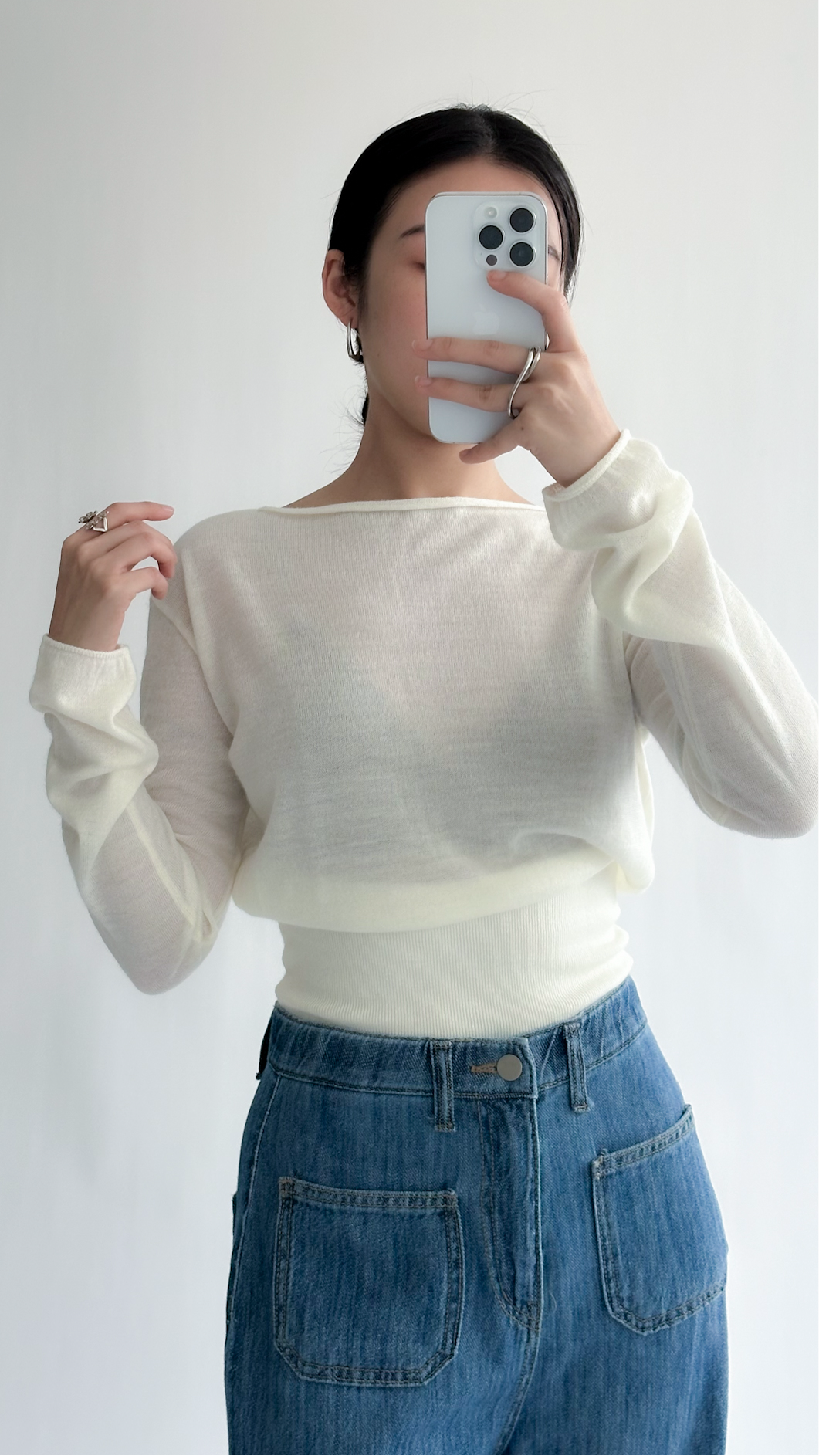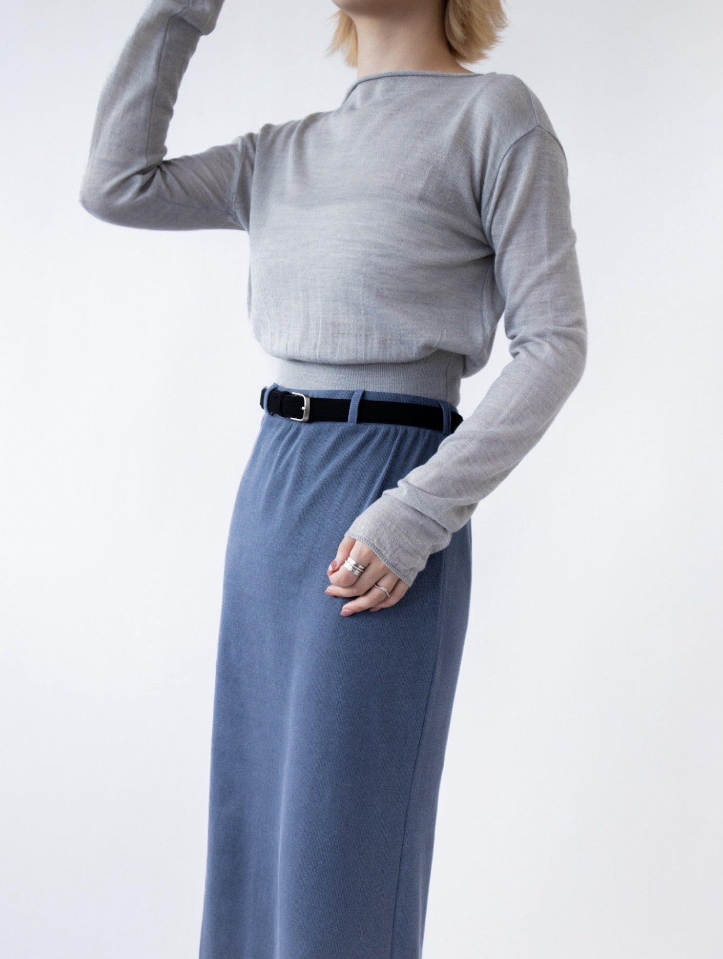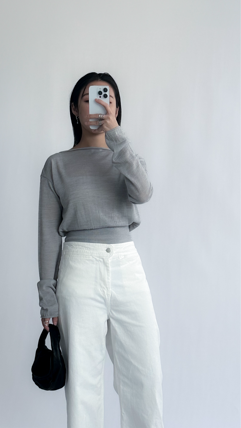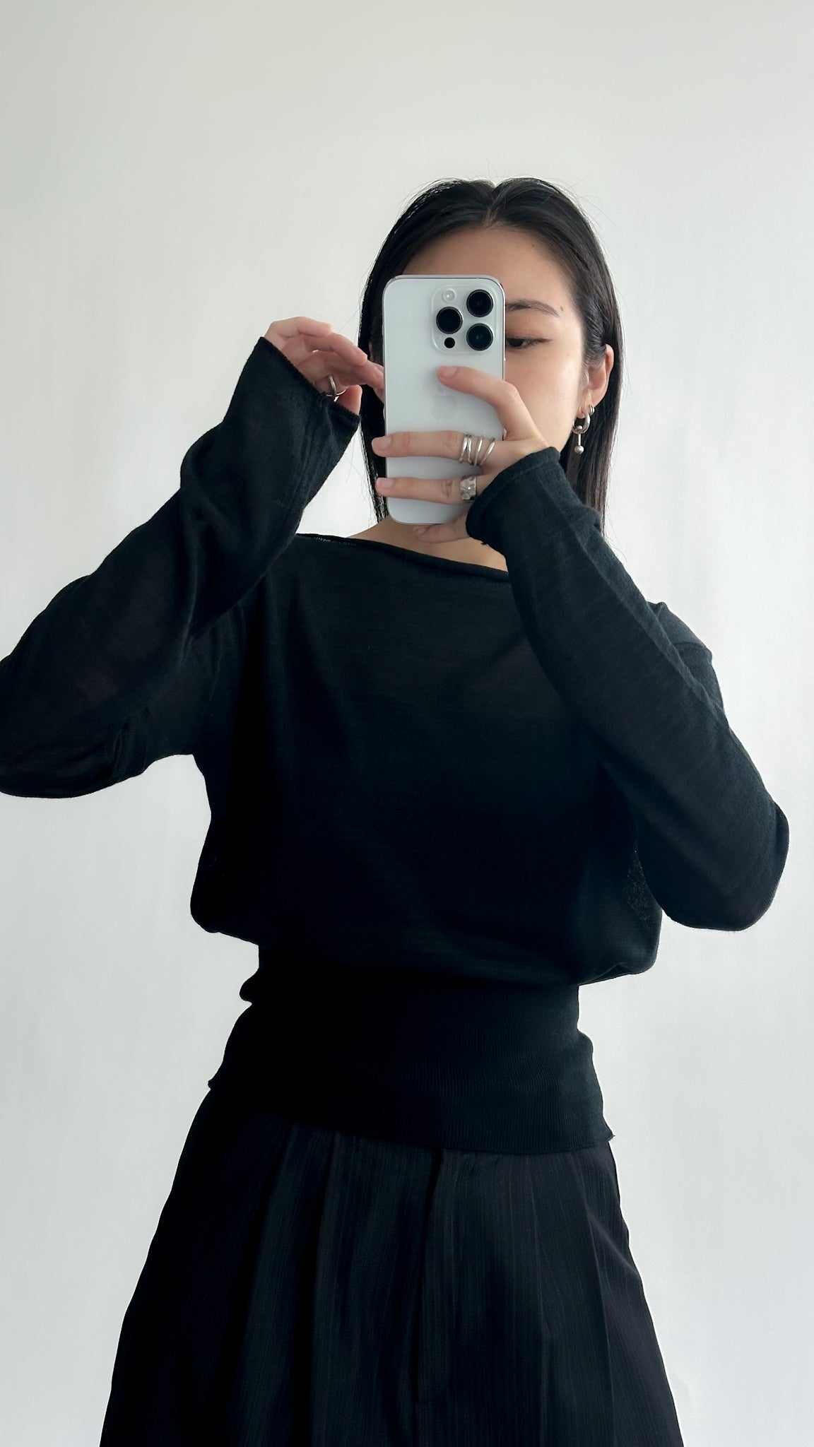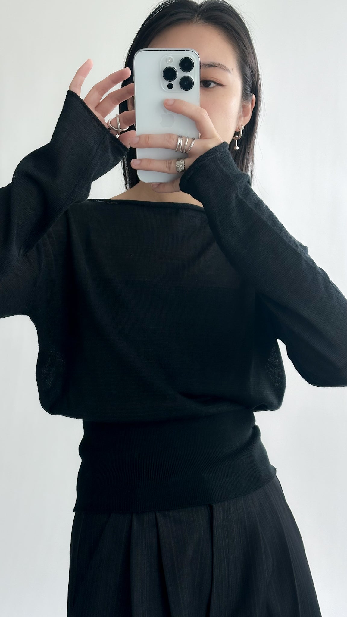一字領束腰薄冷衫 - 黑色