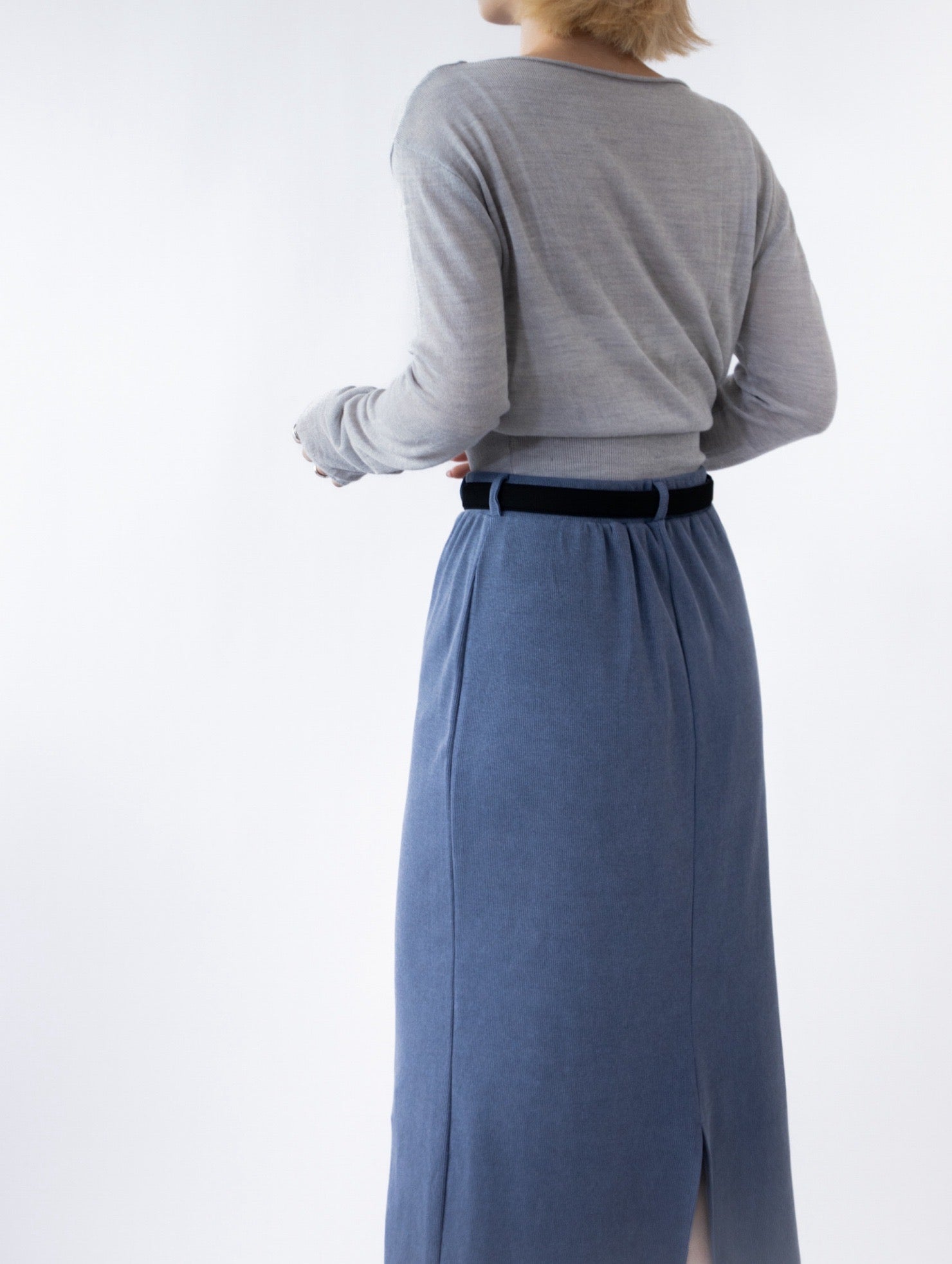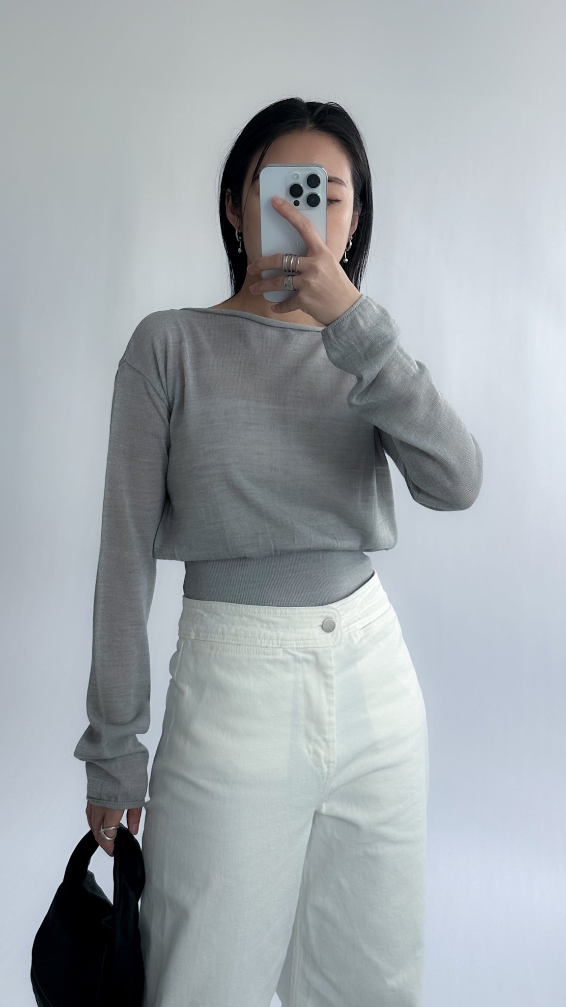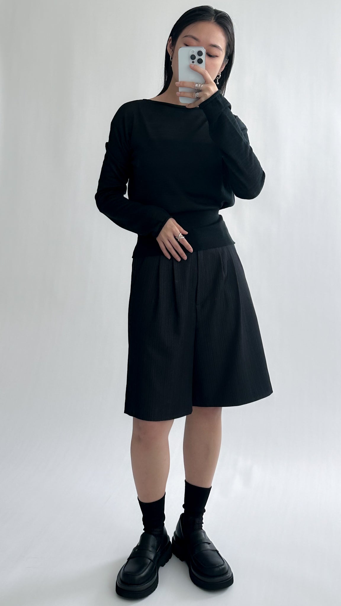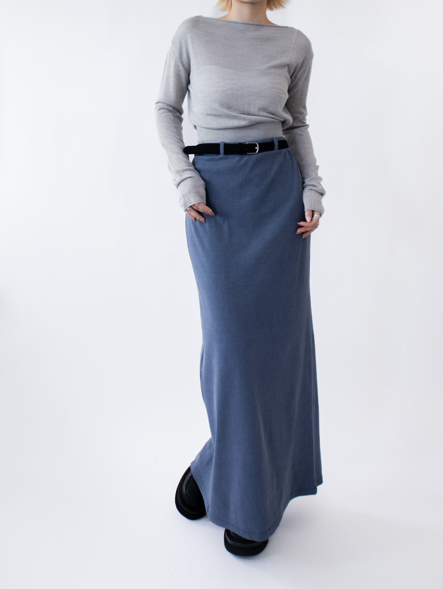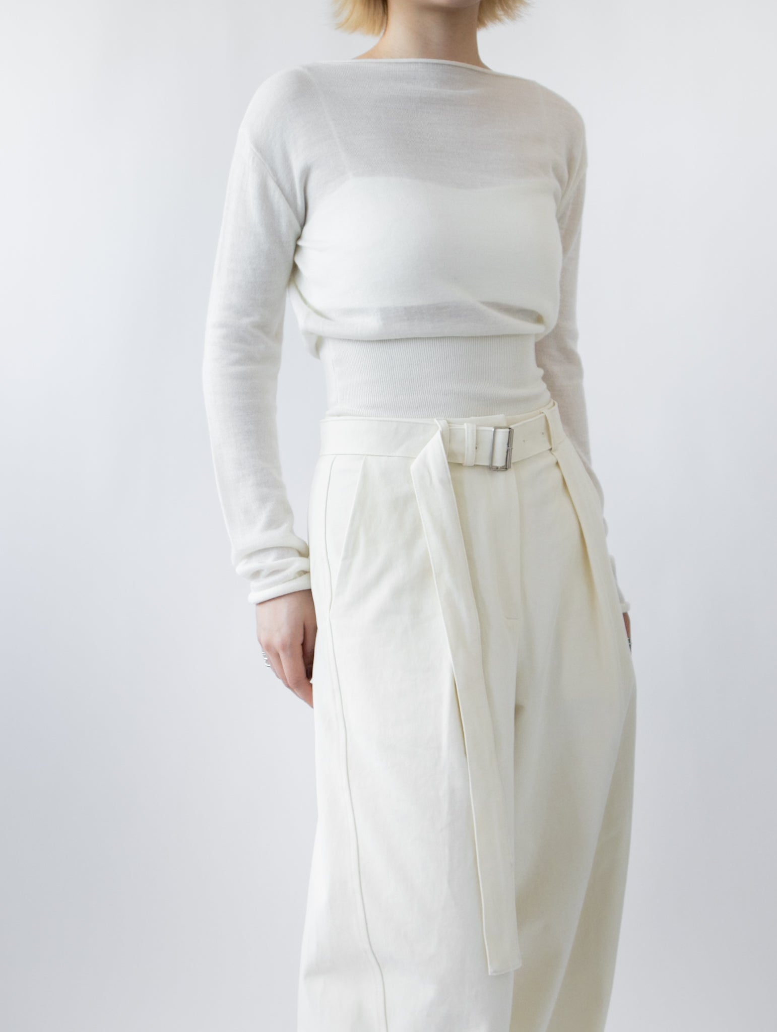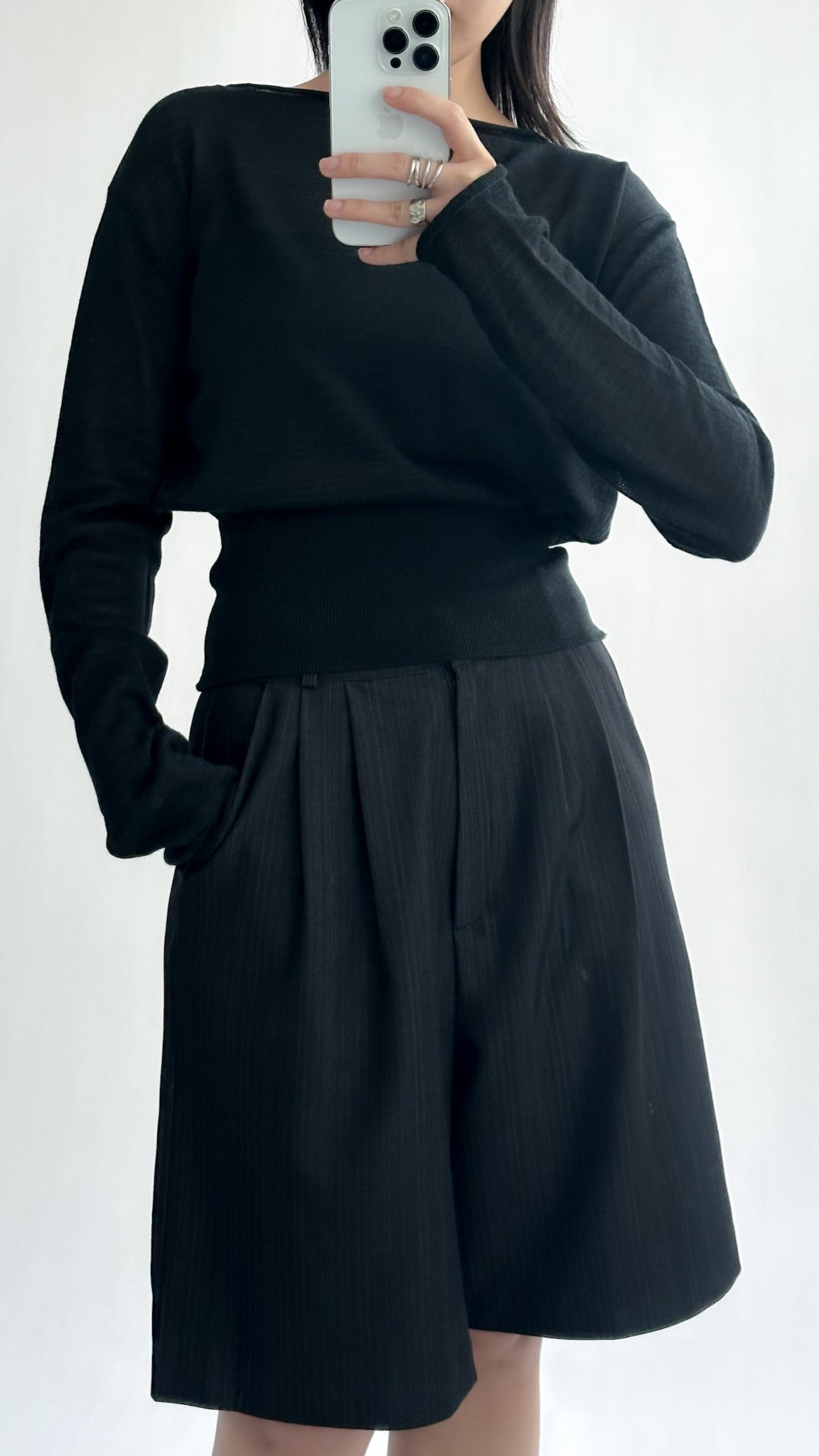 一字領束腰薄冷衫 - 黑色