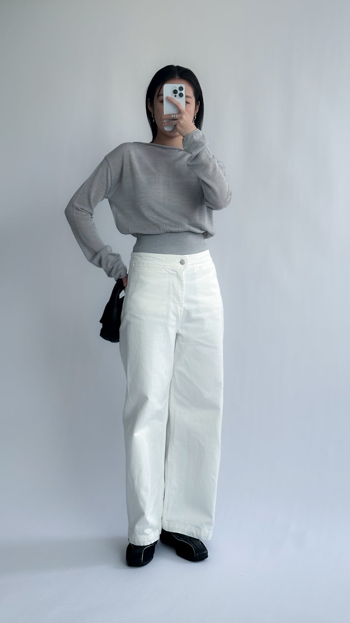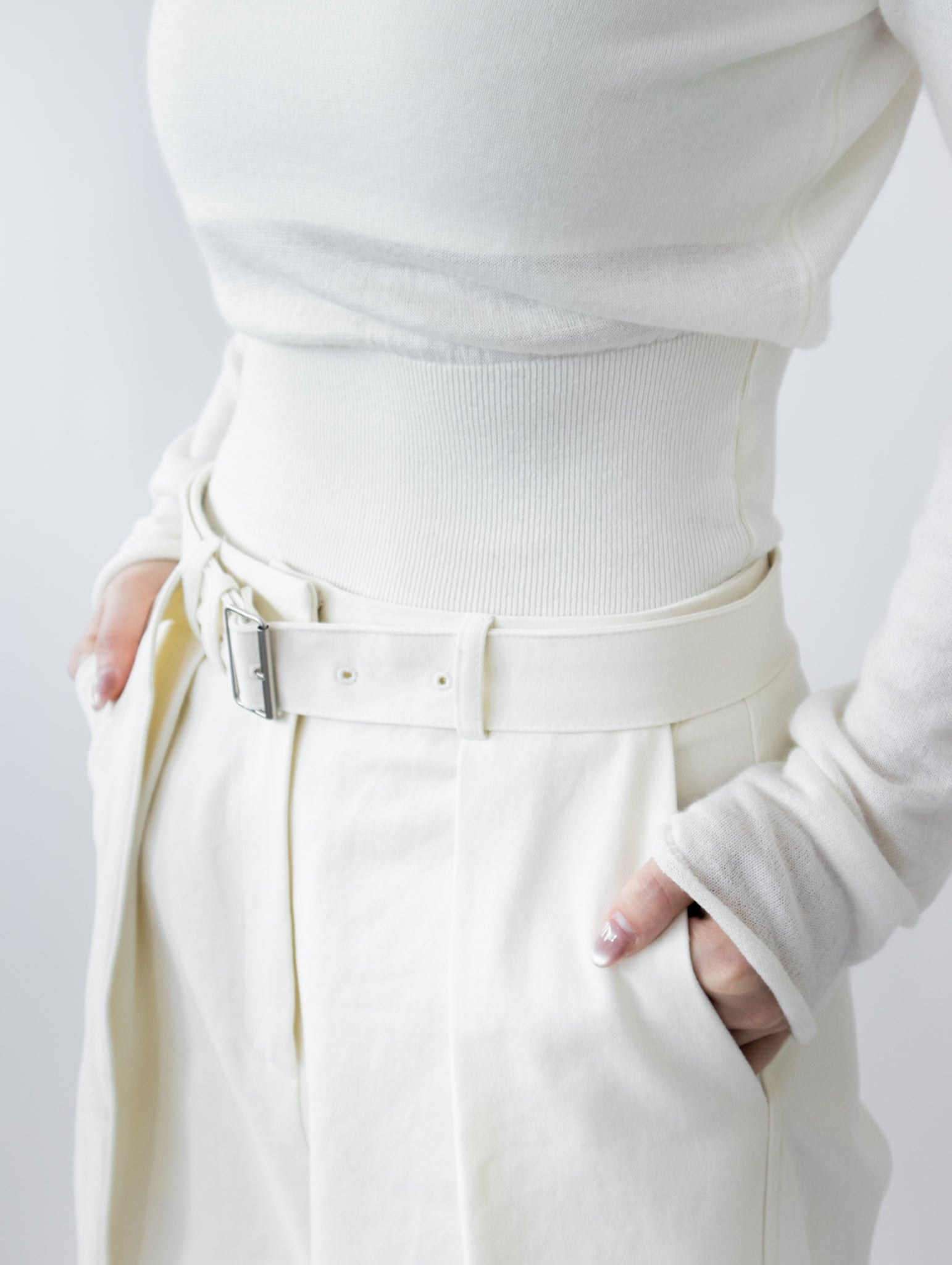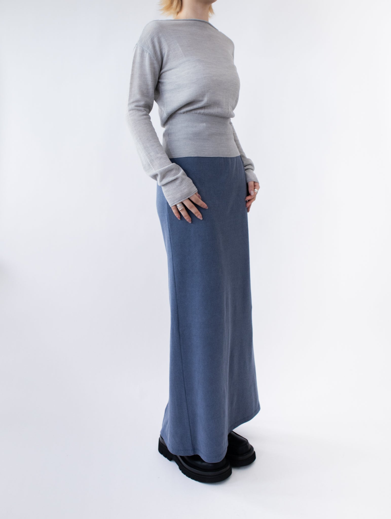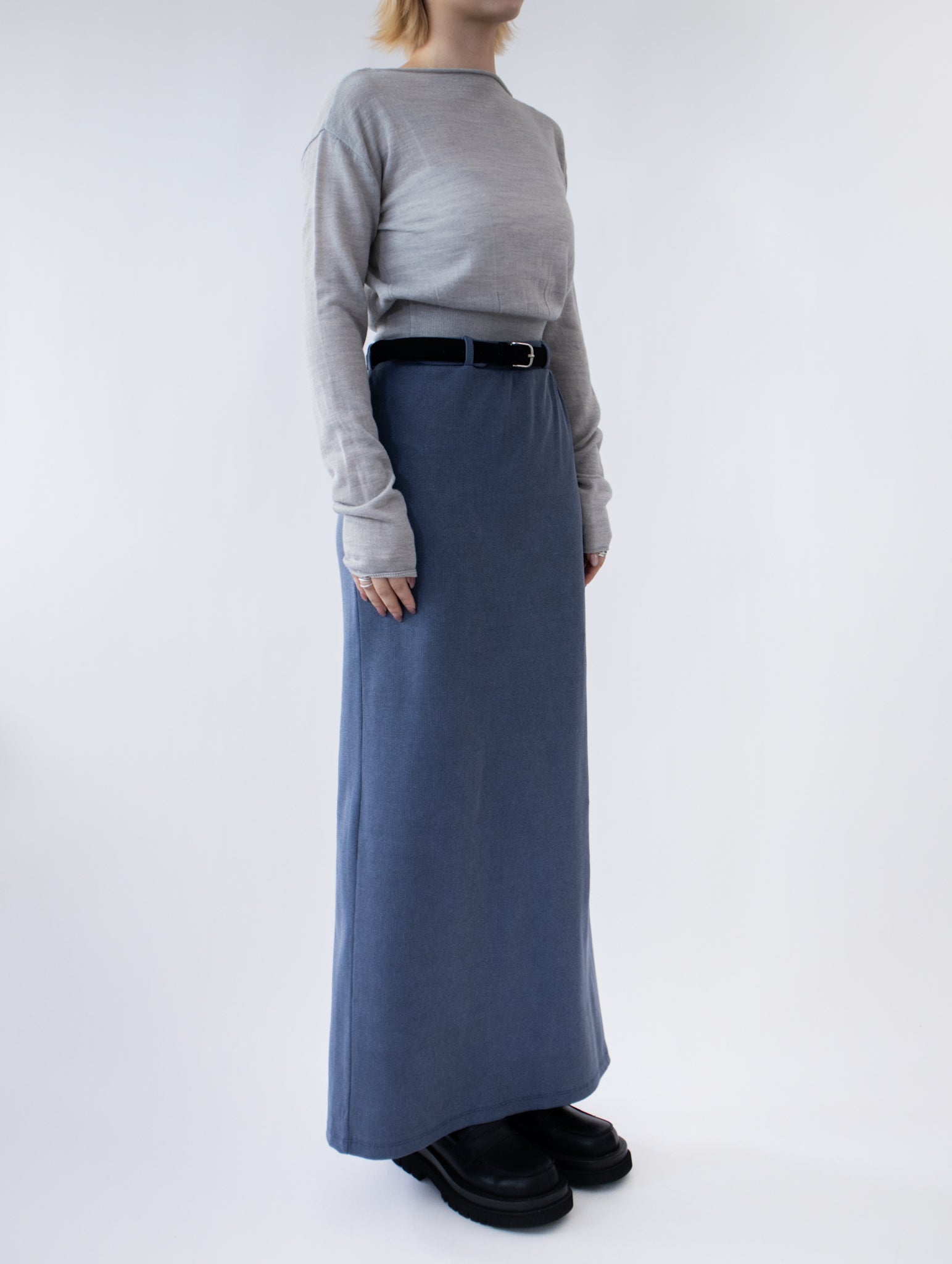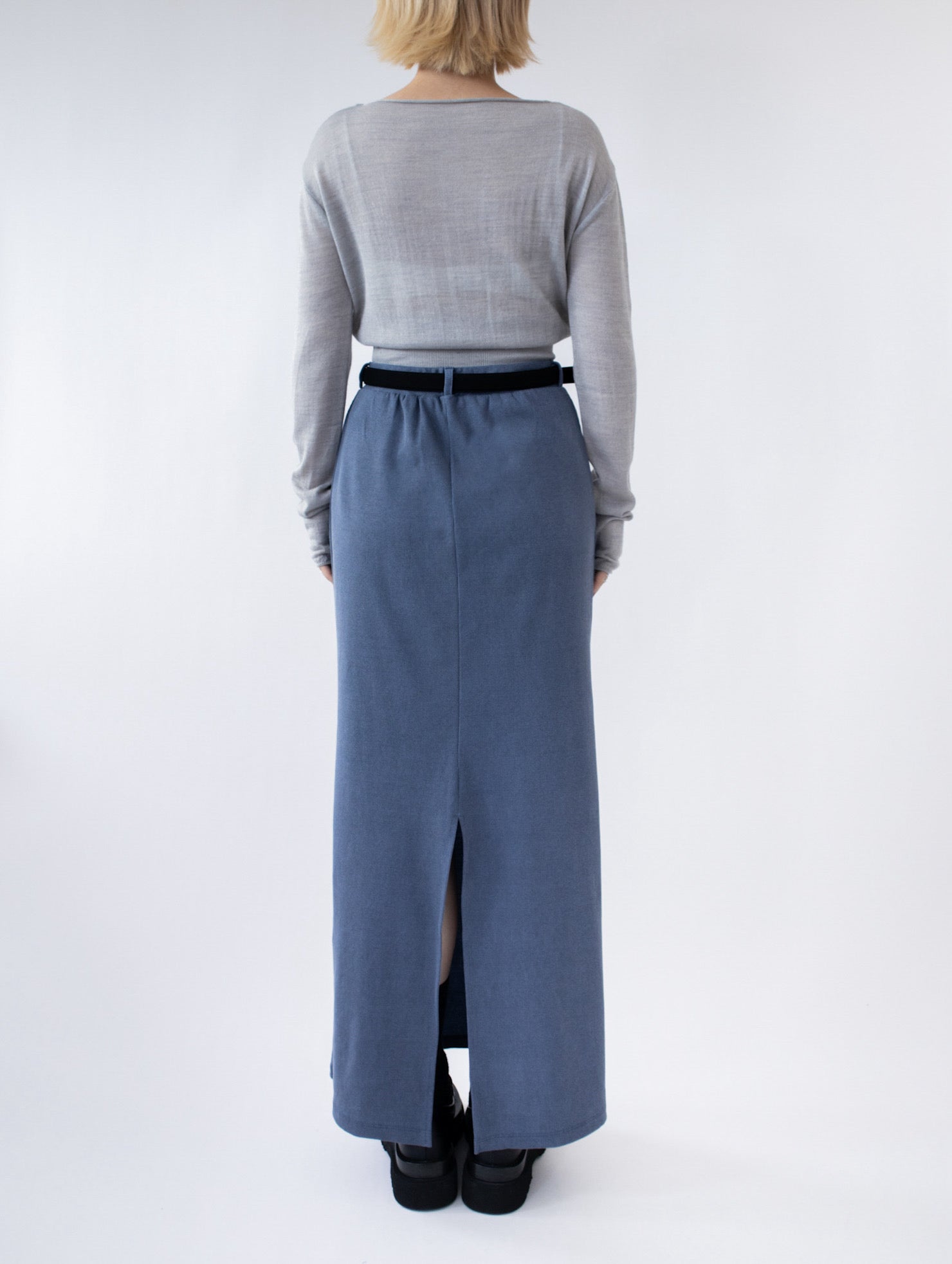 一字領束腰薄冷衫 - 黑色
