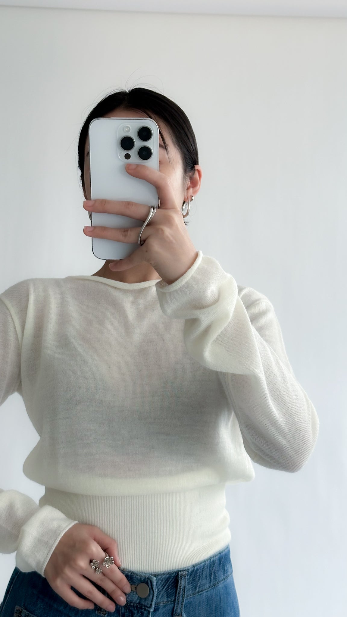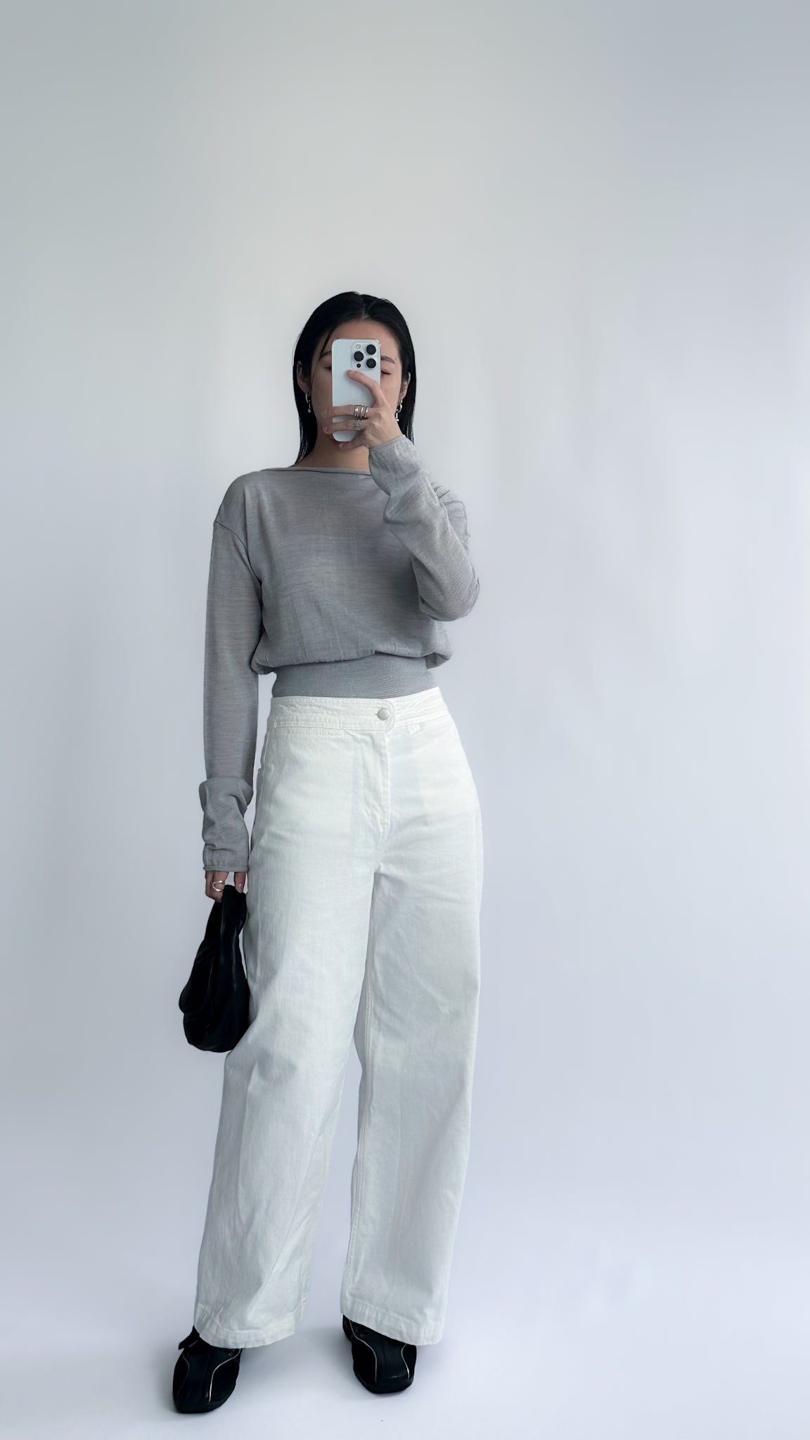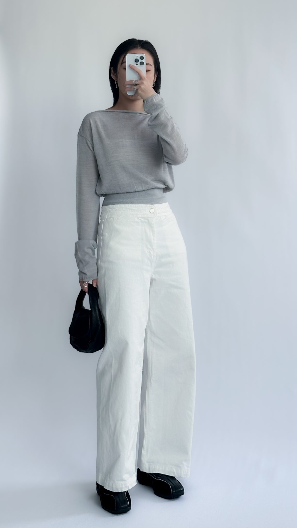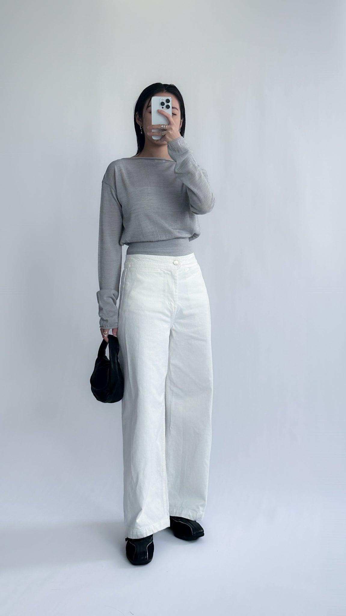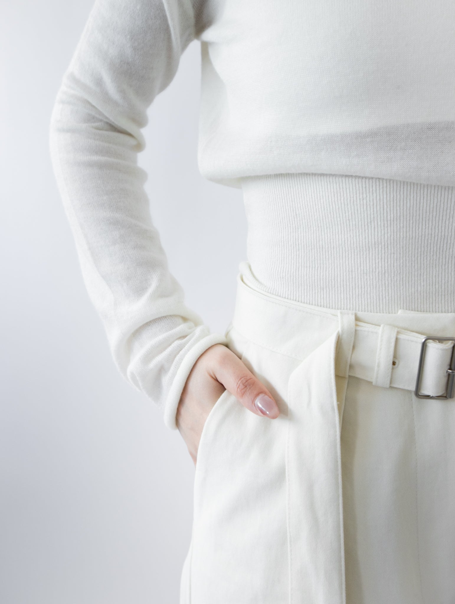 一字領束腰薄冷衫 - 黑色