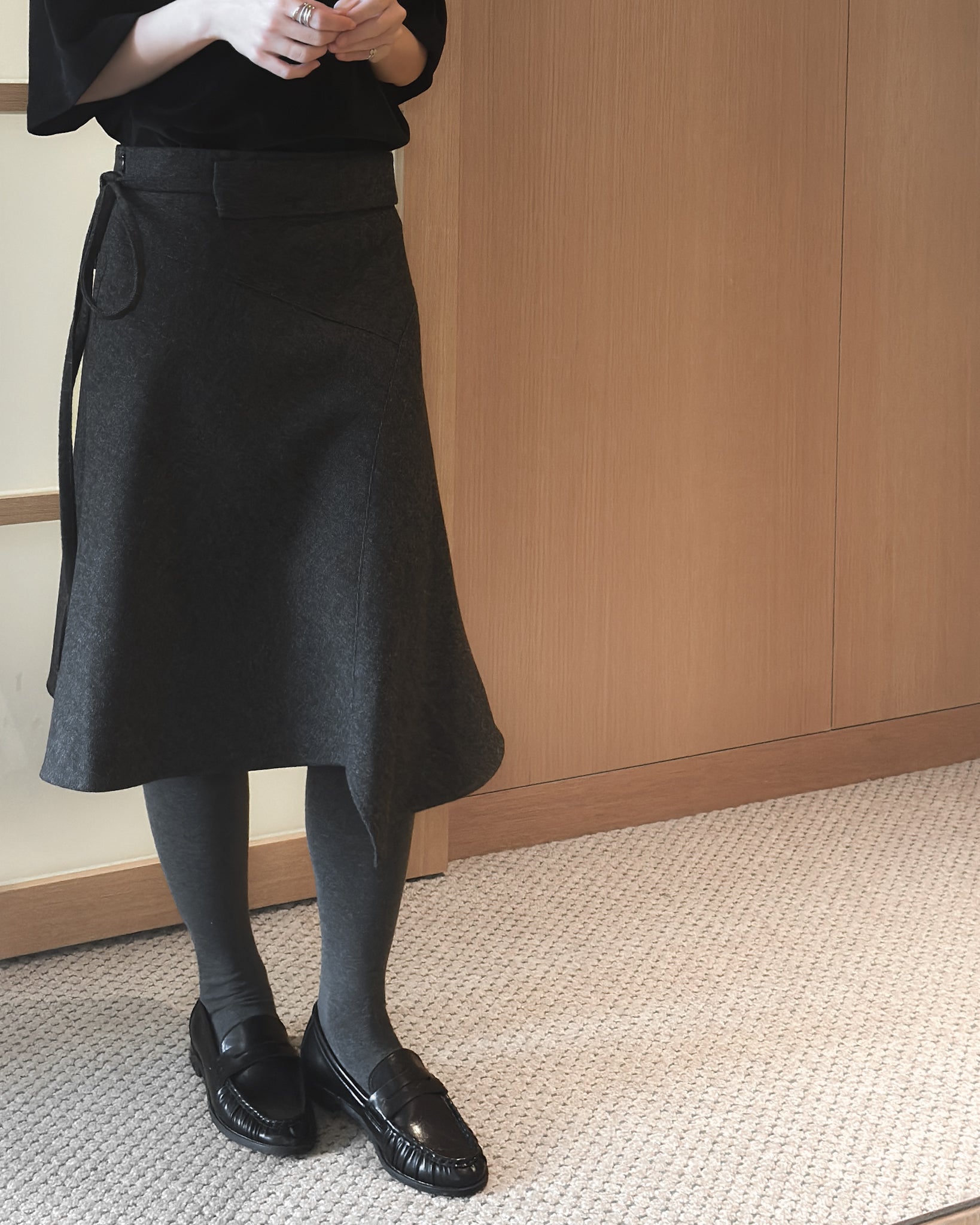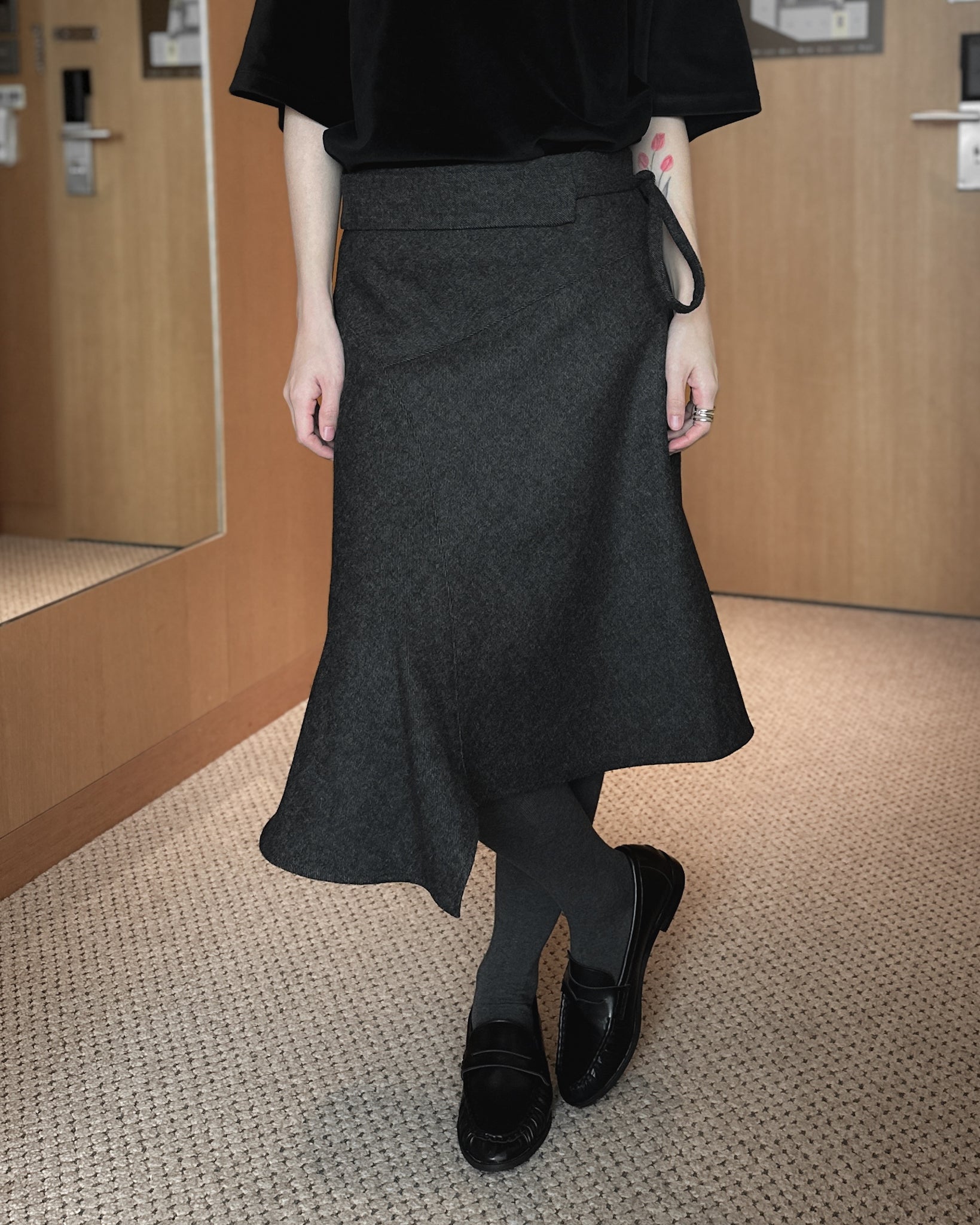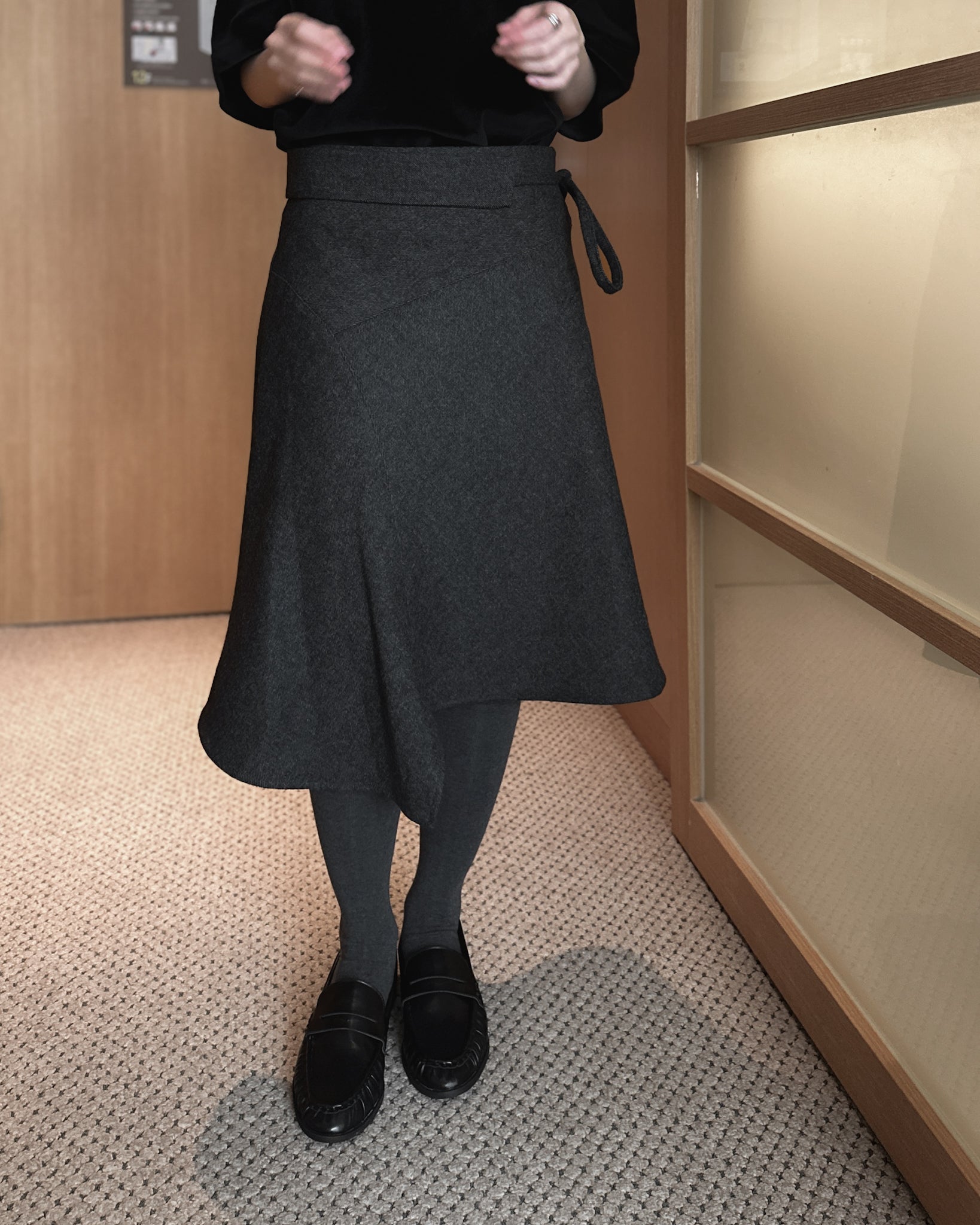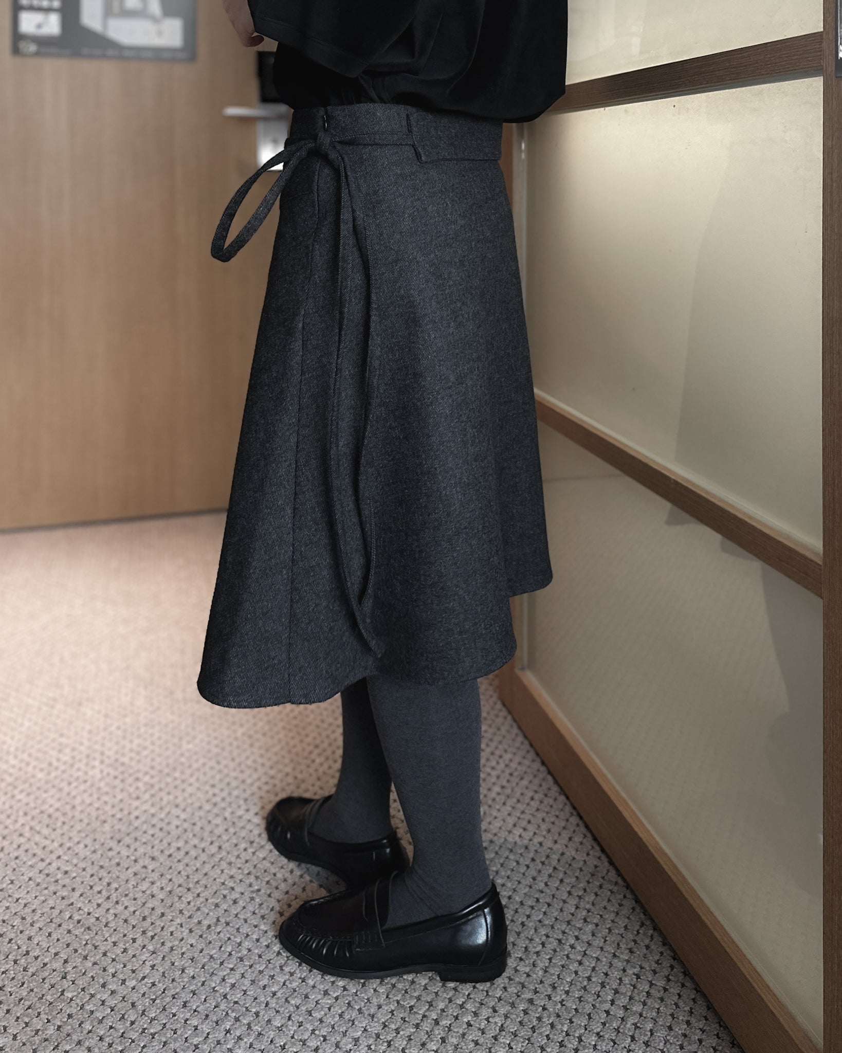 不規則收邊羊毛半截裙 - 深灰色