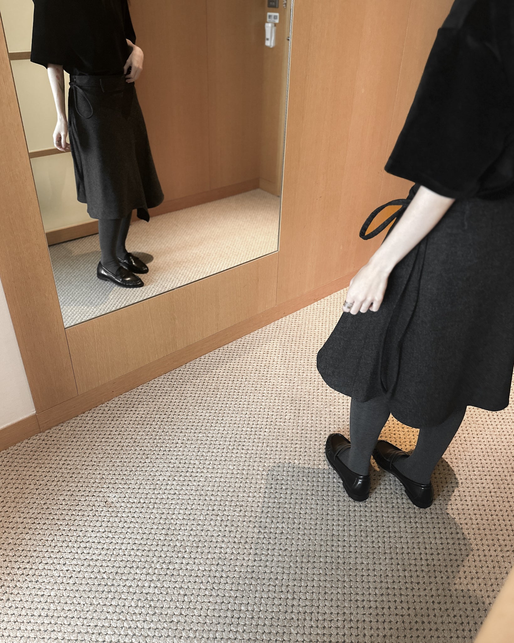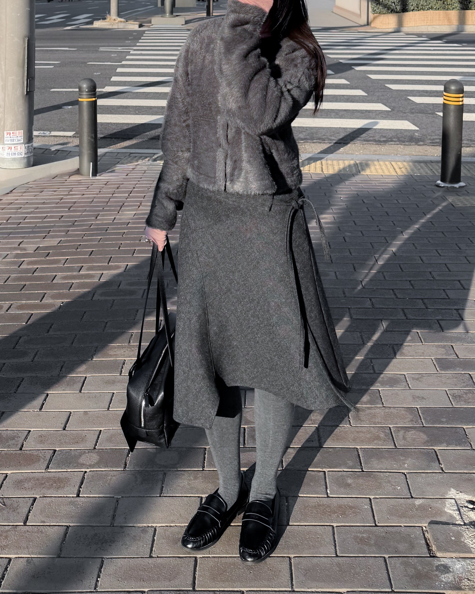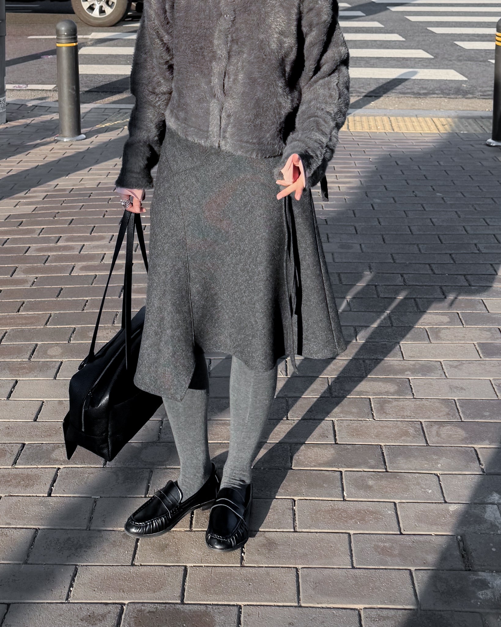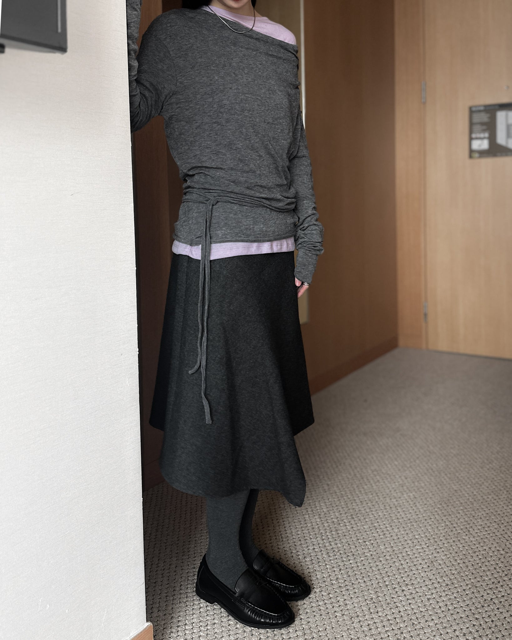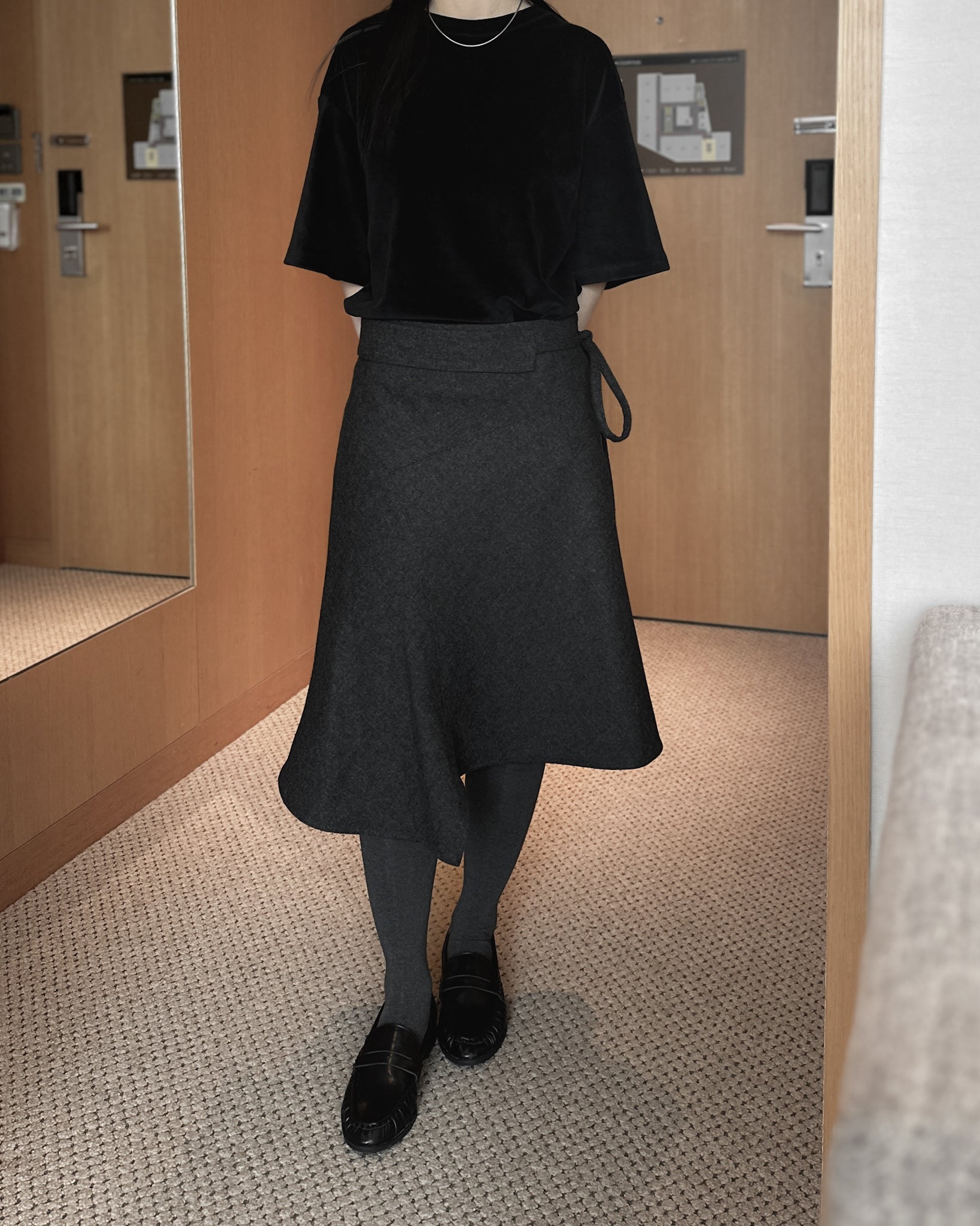 不規則收邊羊毛半截裙 - 深灰色