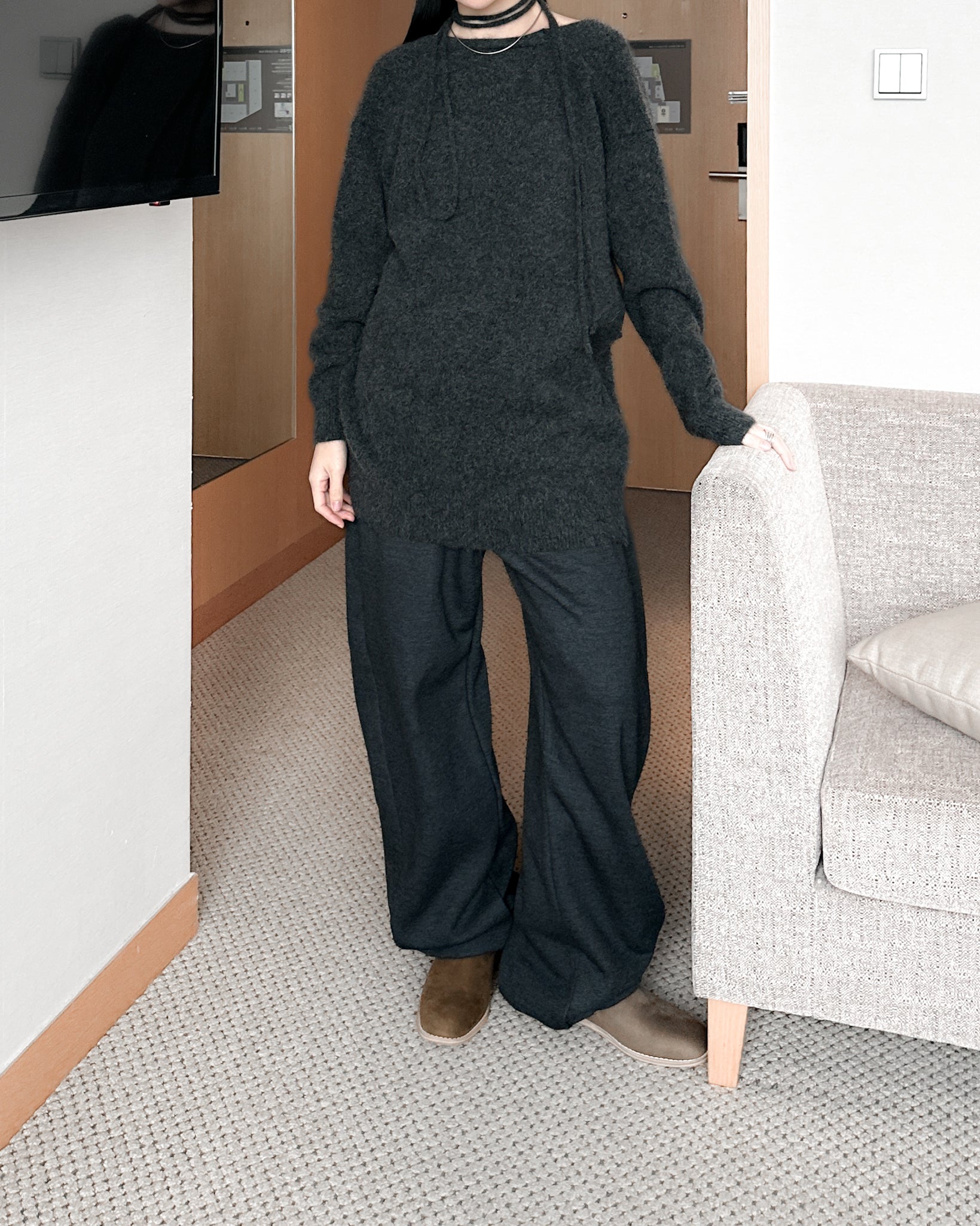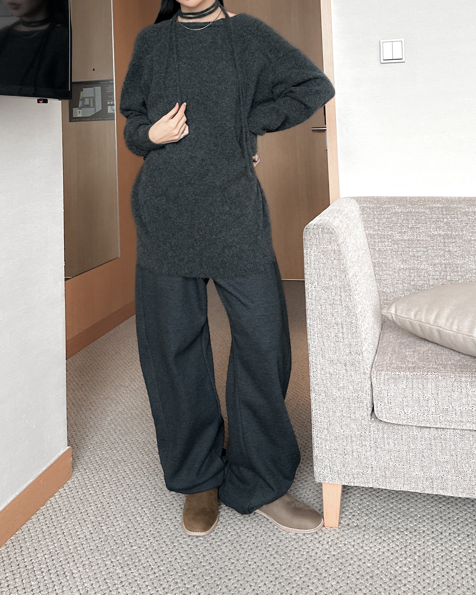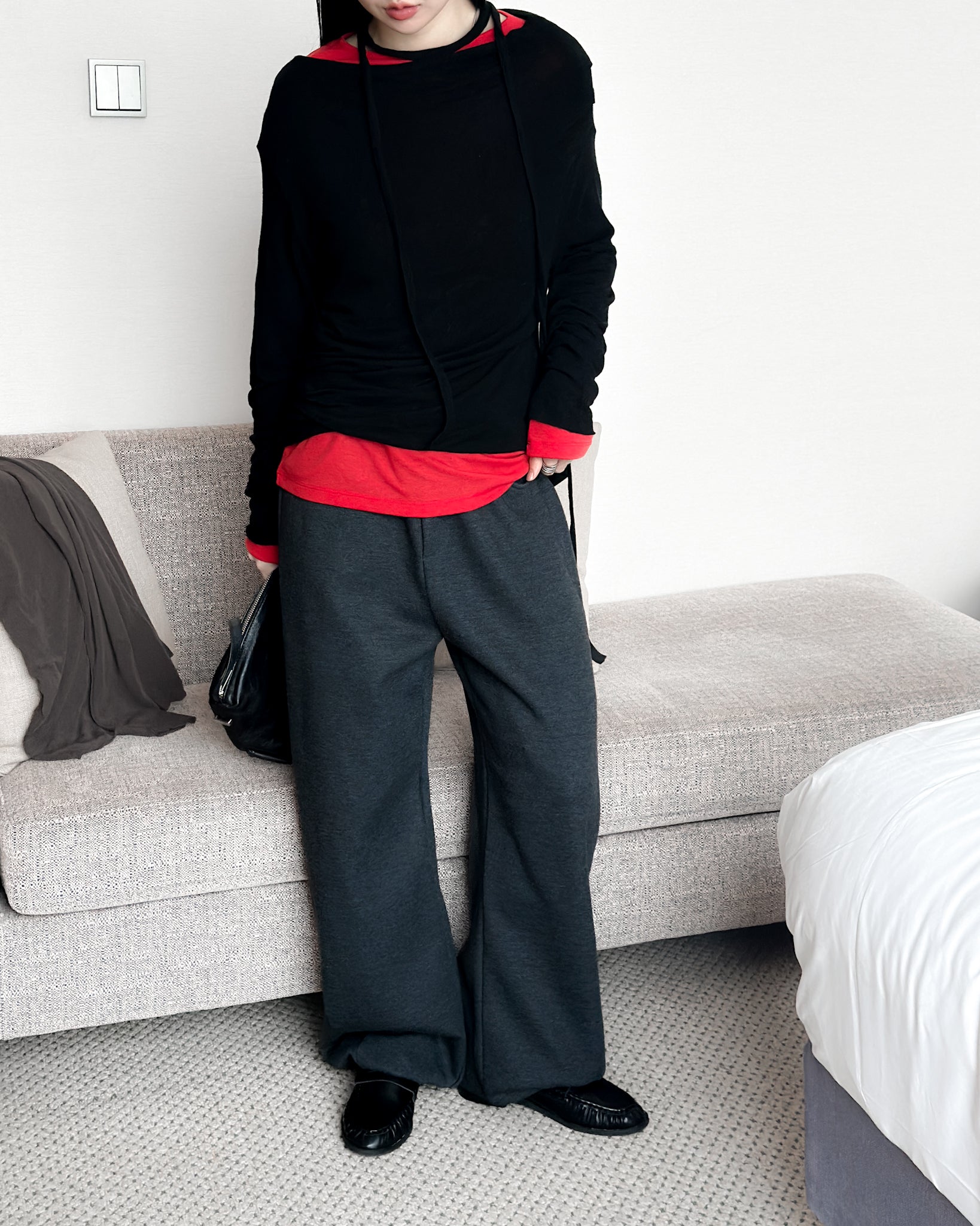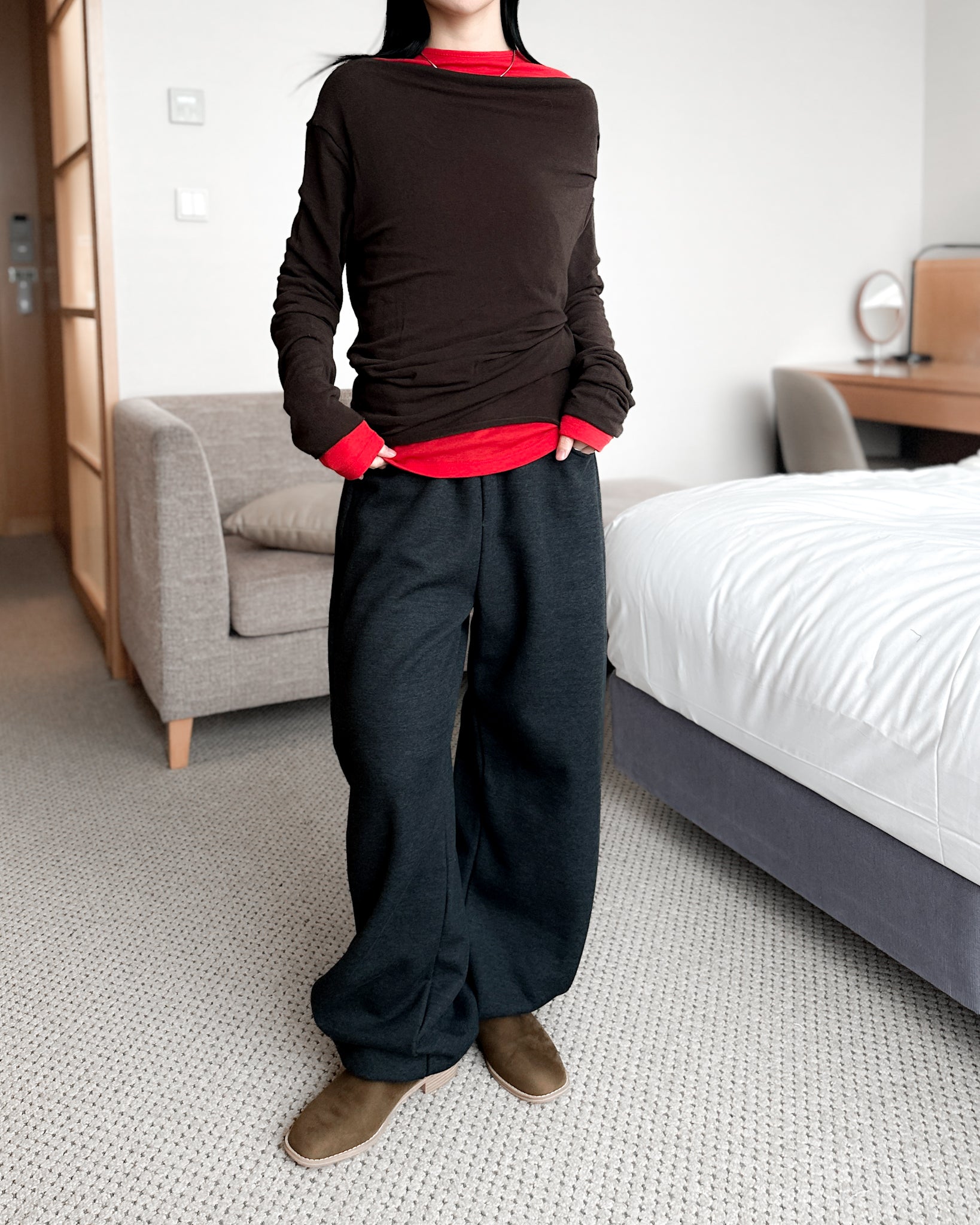 內舖棉舒適棉褲 - 深灰色