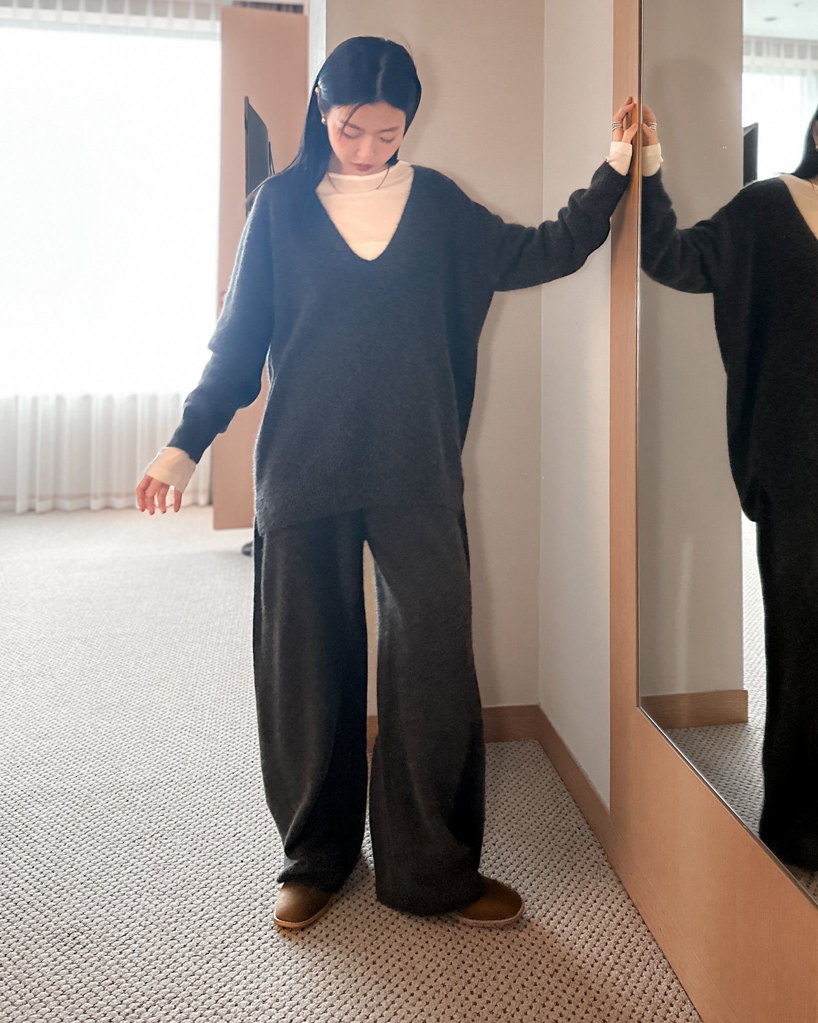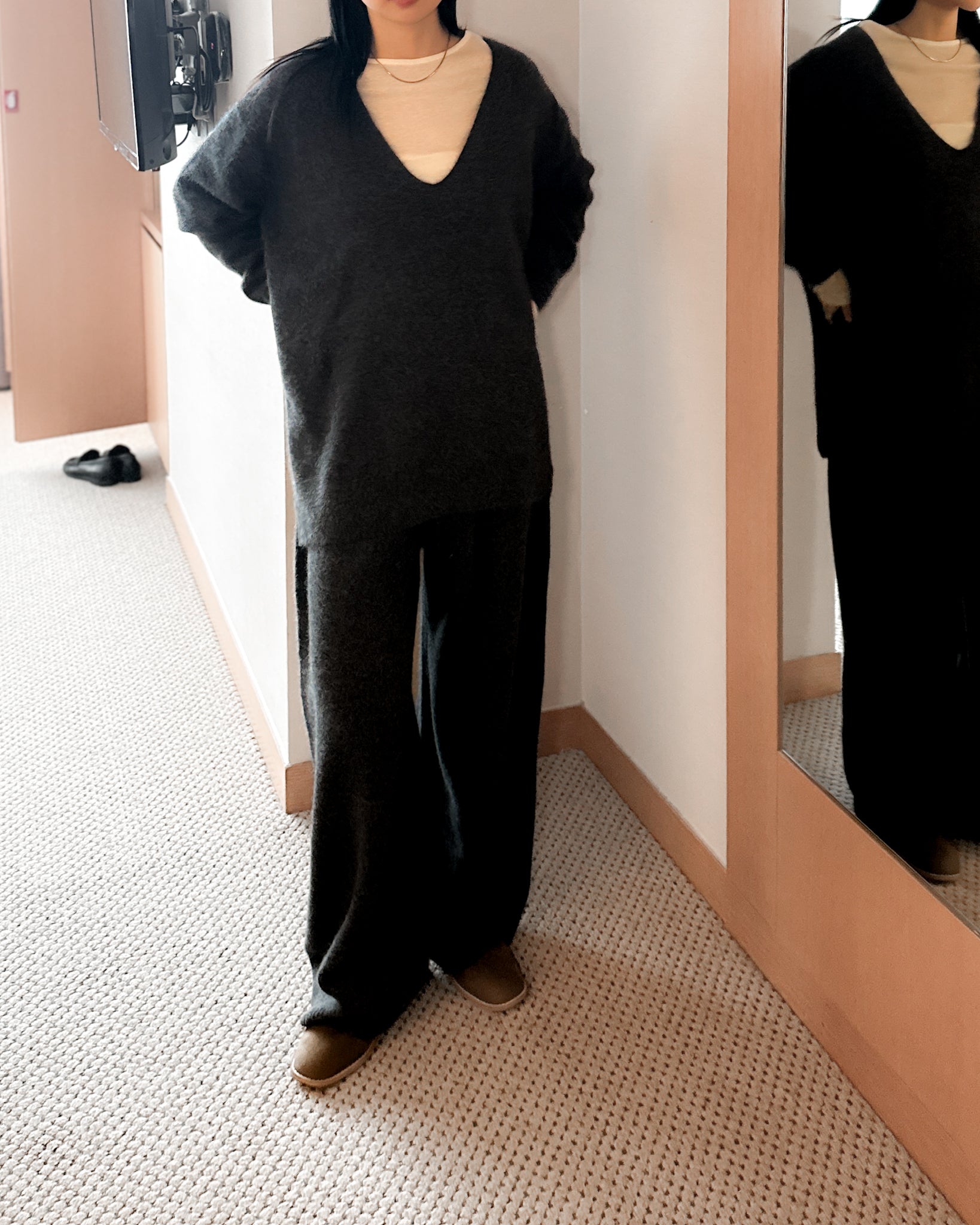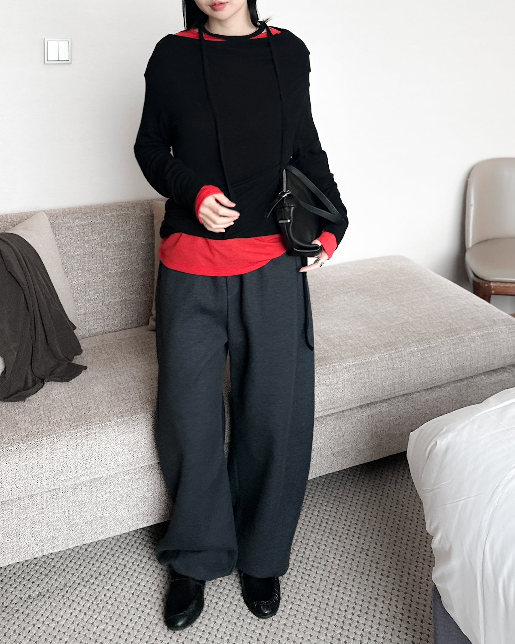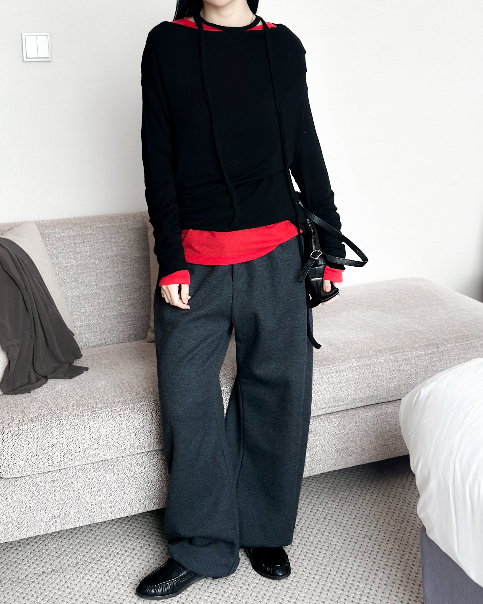 內舖棉舒適棉褲 - 深灰色