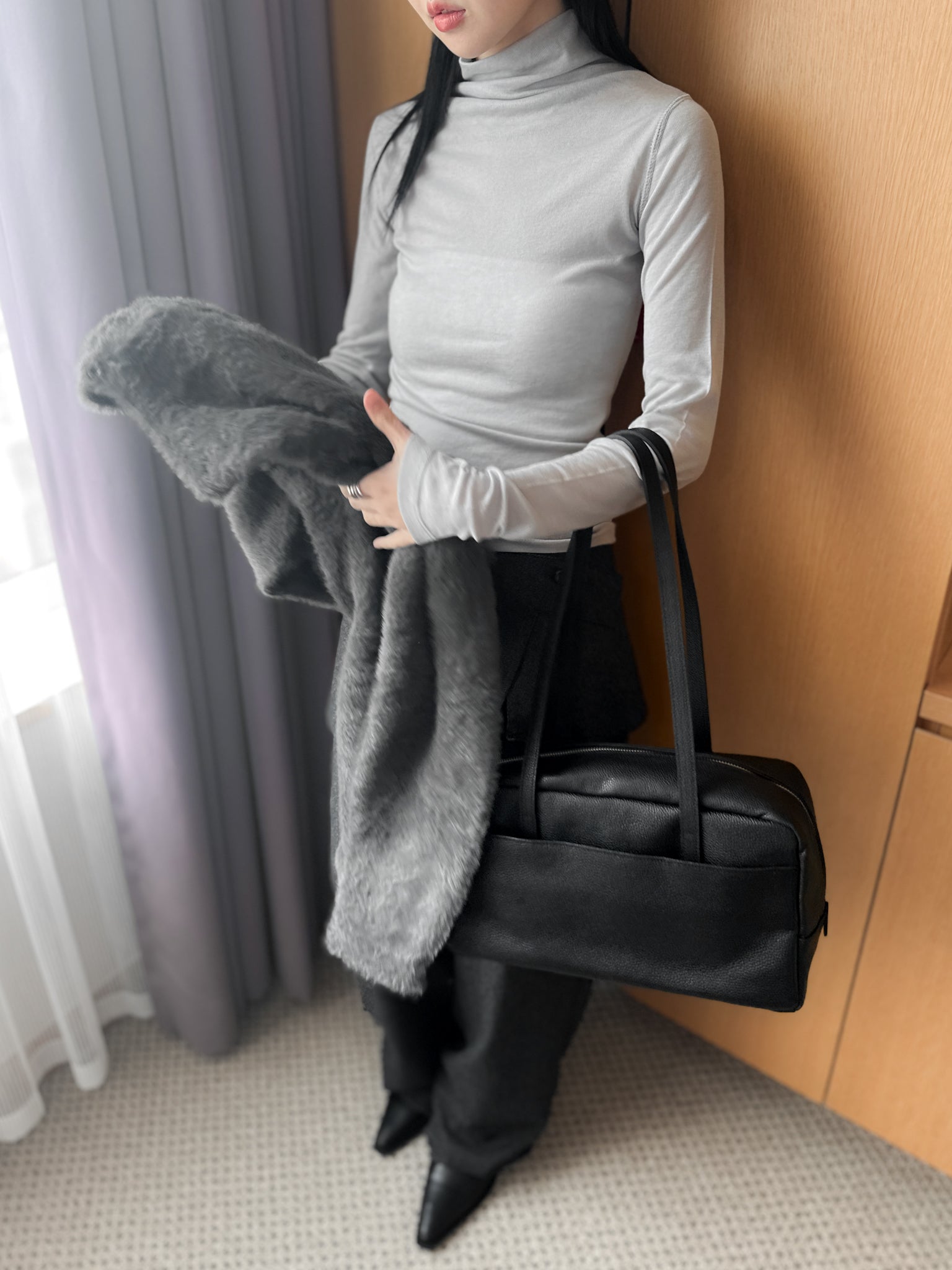 可拆式裙片設計,一褲兩穿更多變化。採用薄羊毛面料,輕盈舒適。直筒剪裁修飾腿型,深灰色經典百搭,提供S/M尺碼選擇。