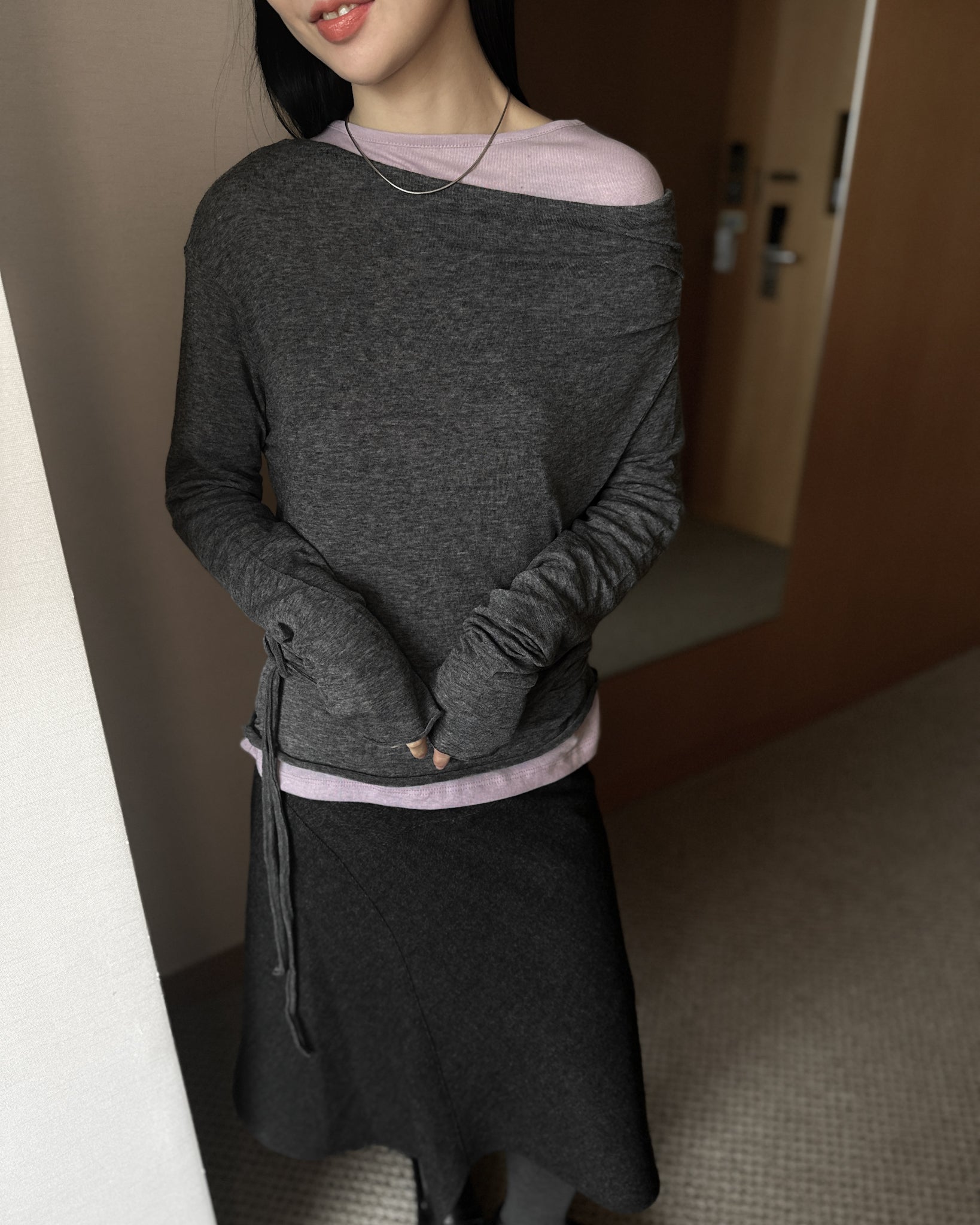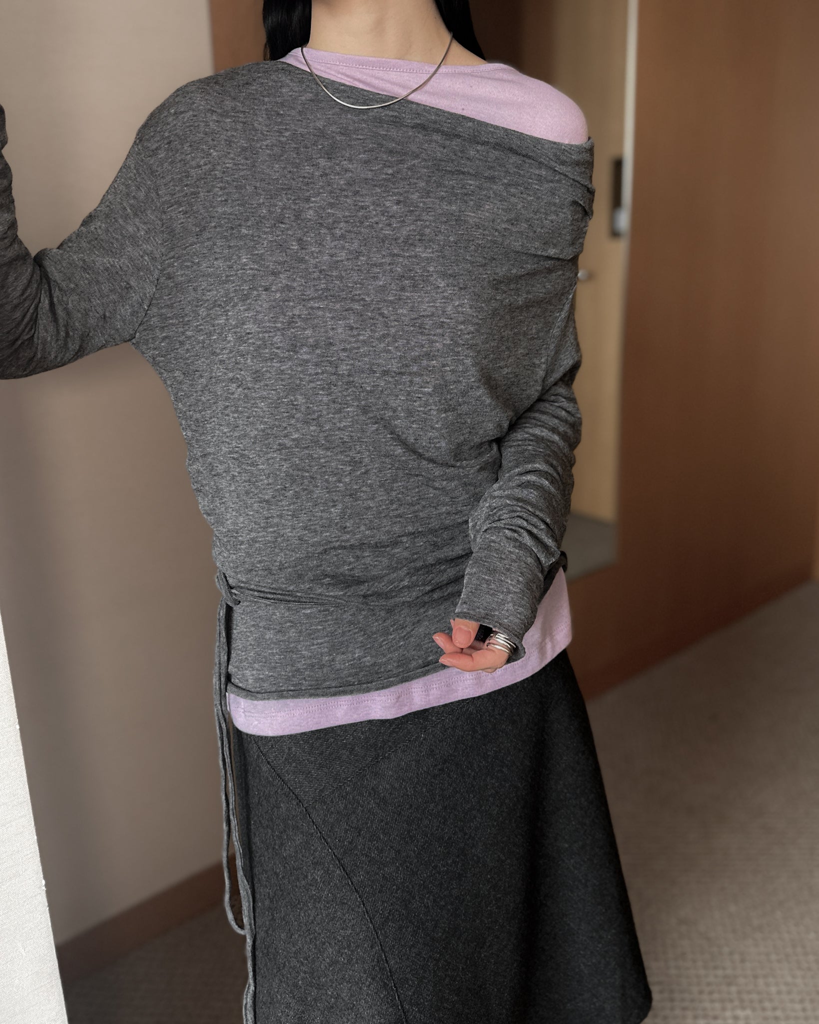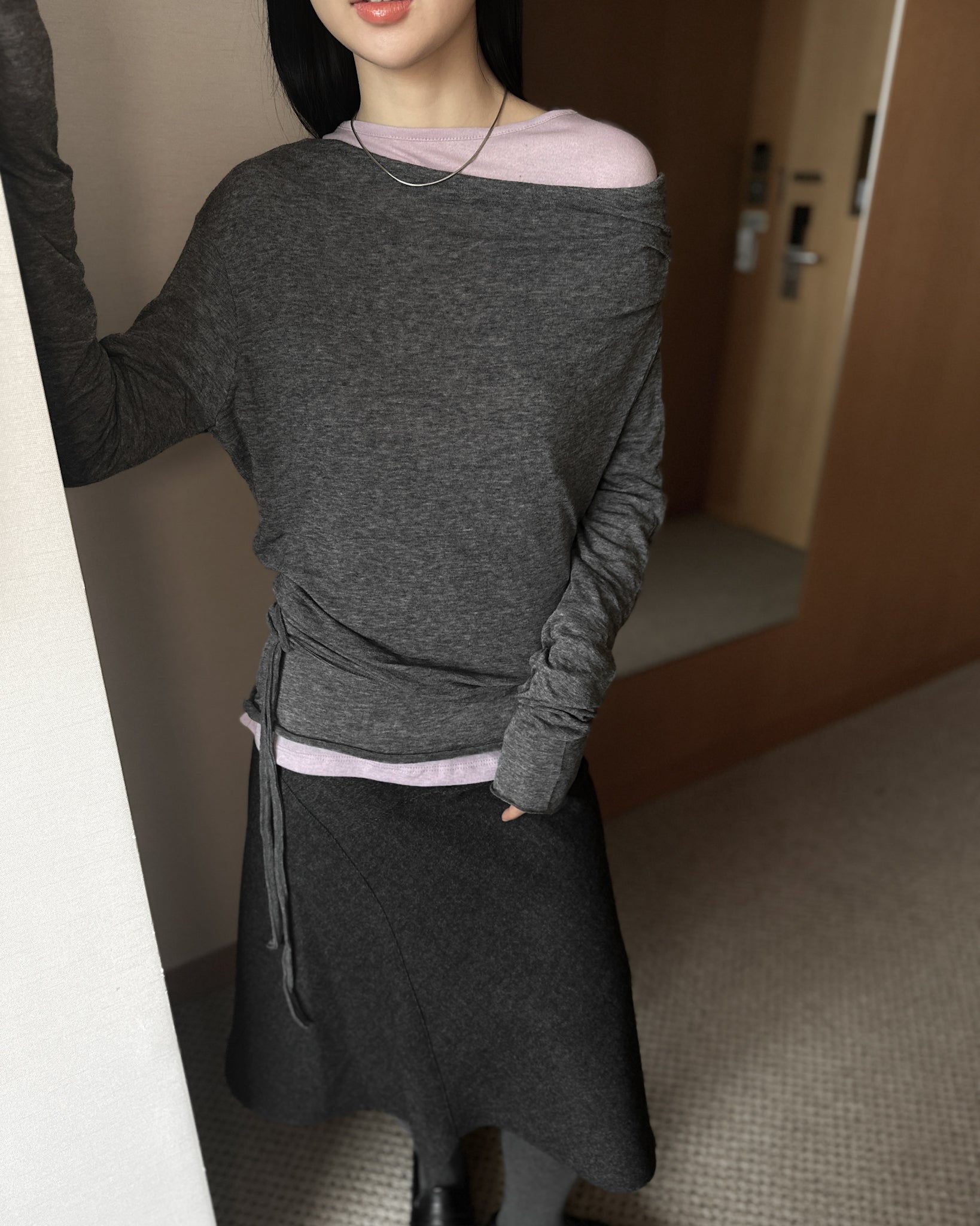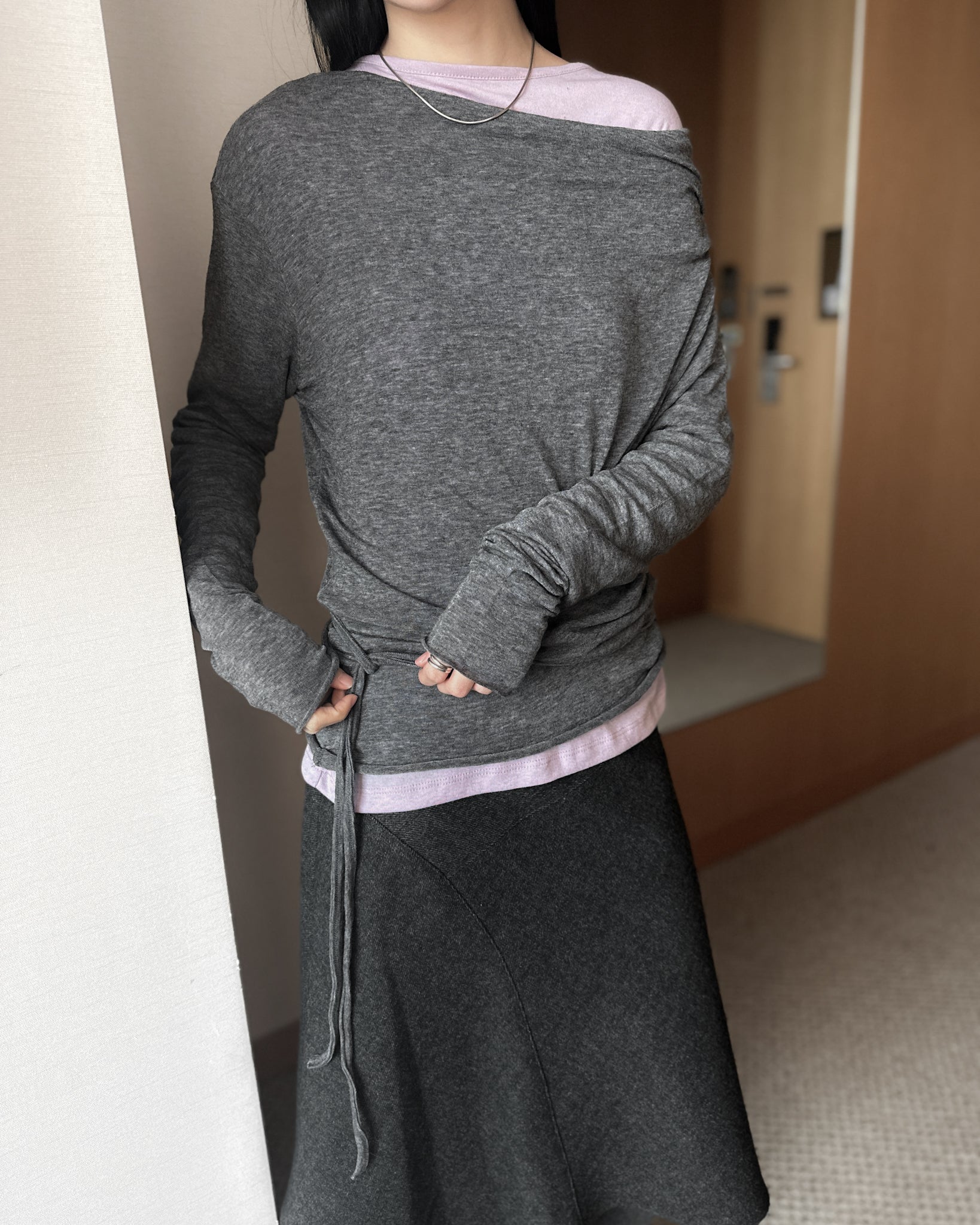 獨特斜肩設計配合抓褶細節,展現優雅氣質。採用柔軟天絲面料,親膚透氣。