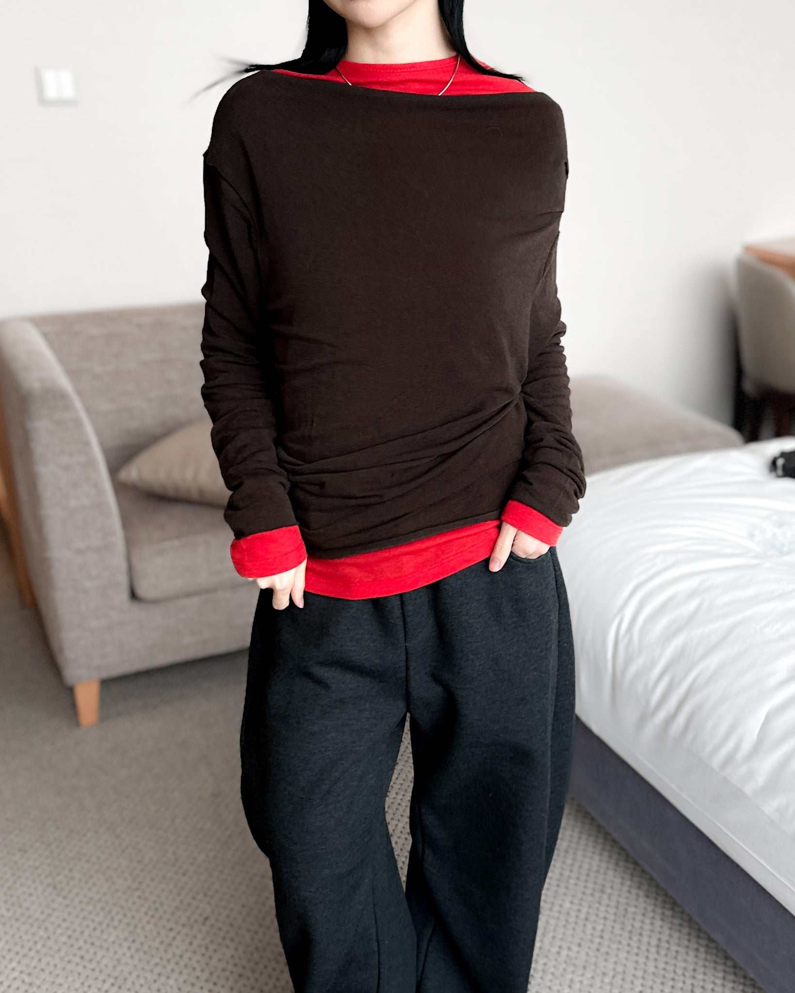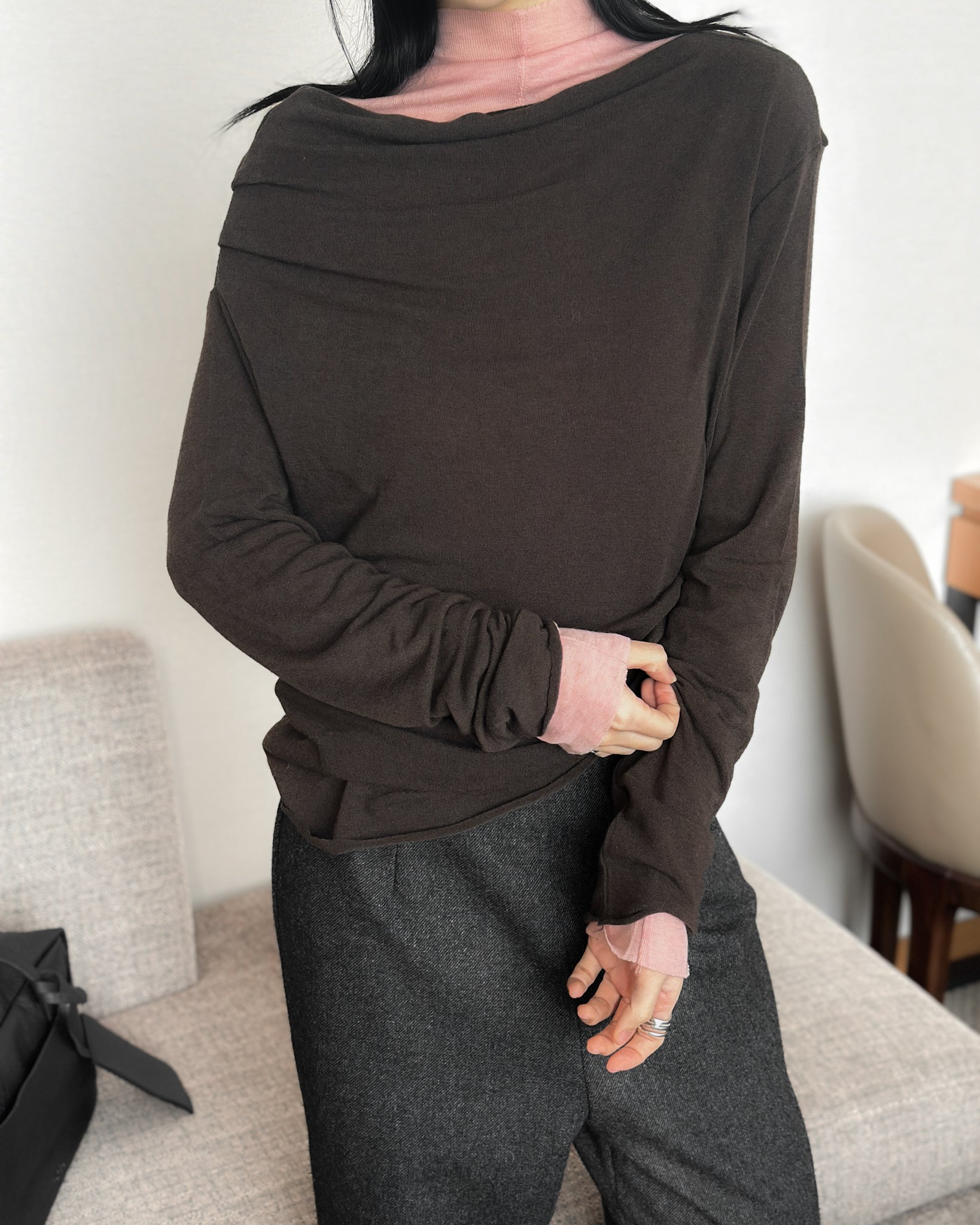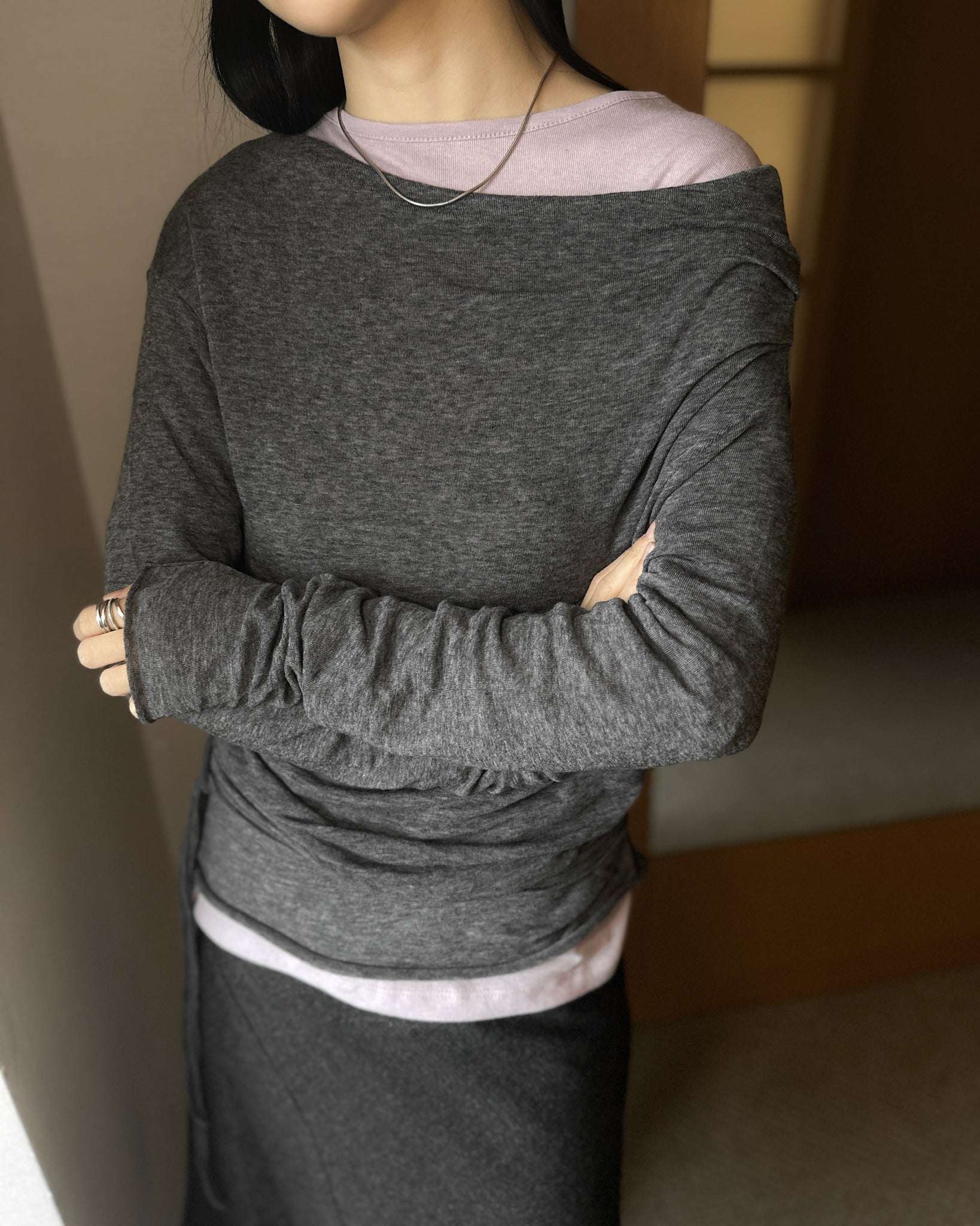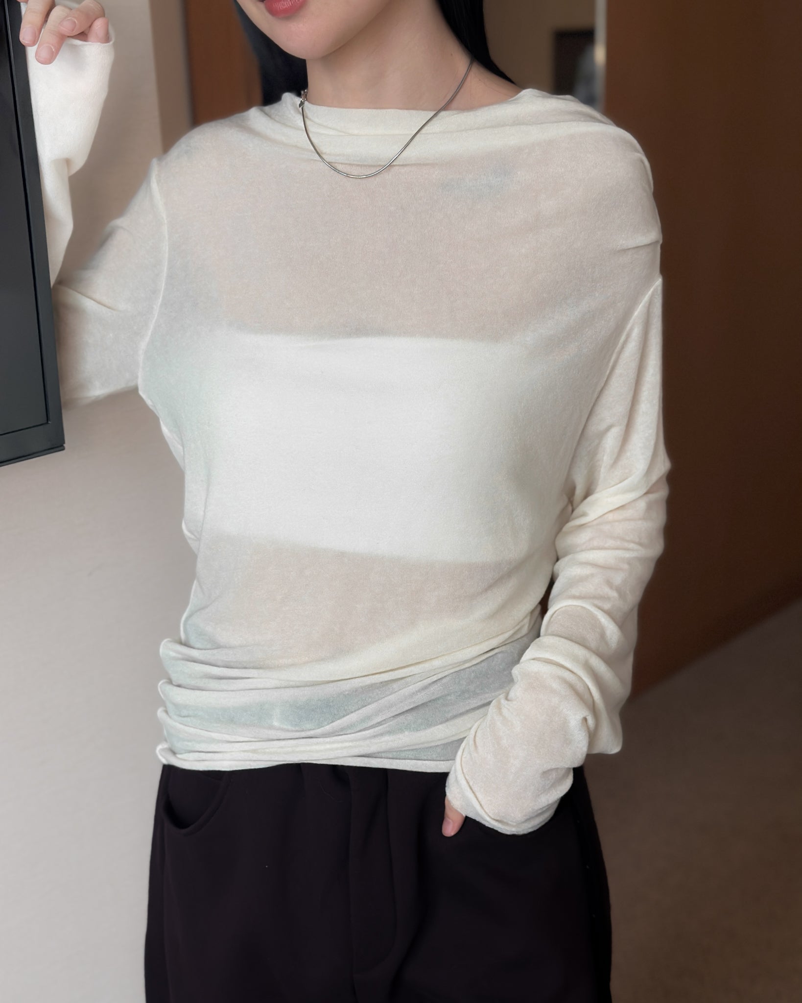 獨特斜肩設計配合抓褶細節,展現優雅氣質。採用柔軟天絲面料,親膚透氣。