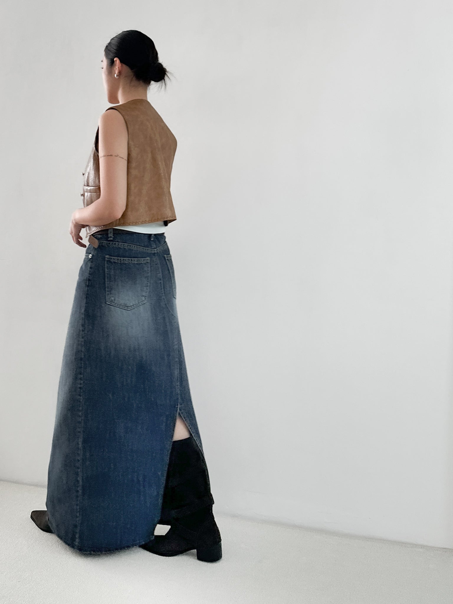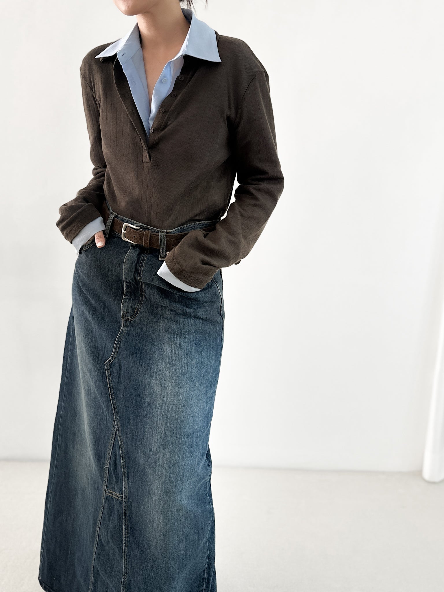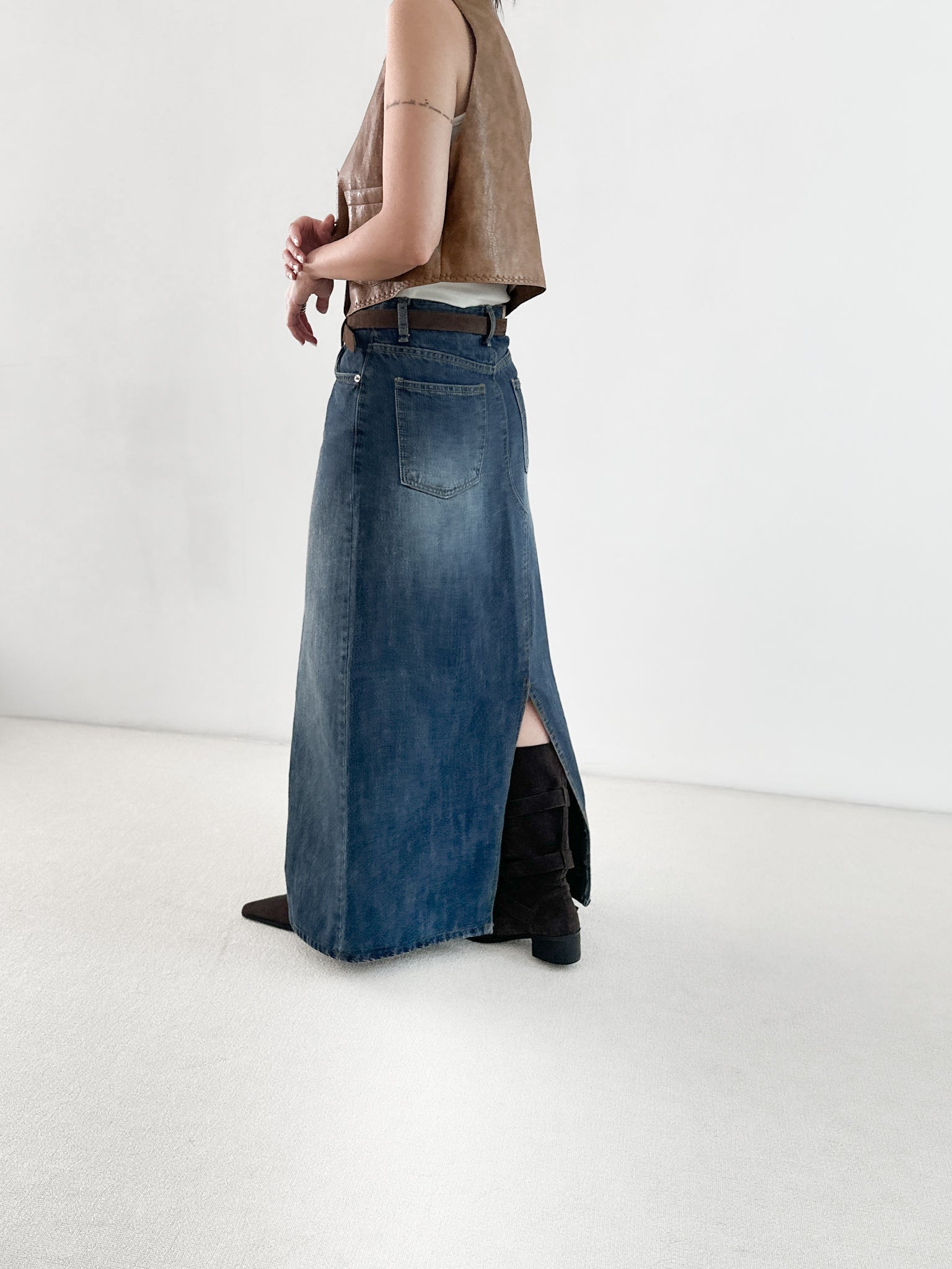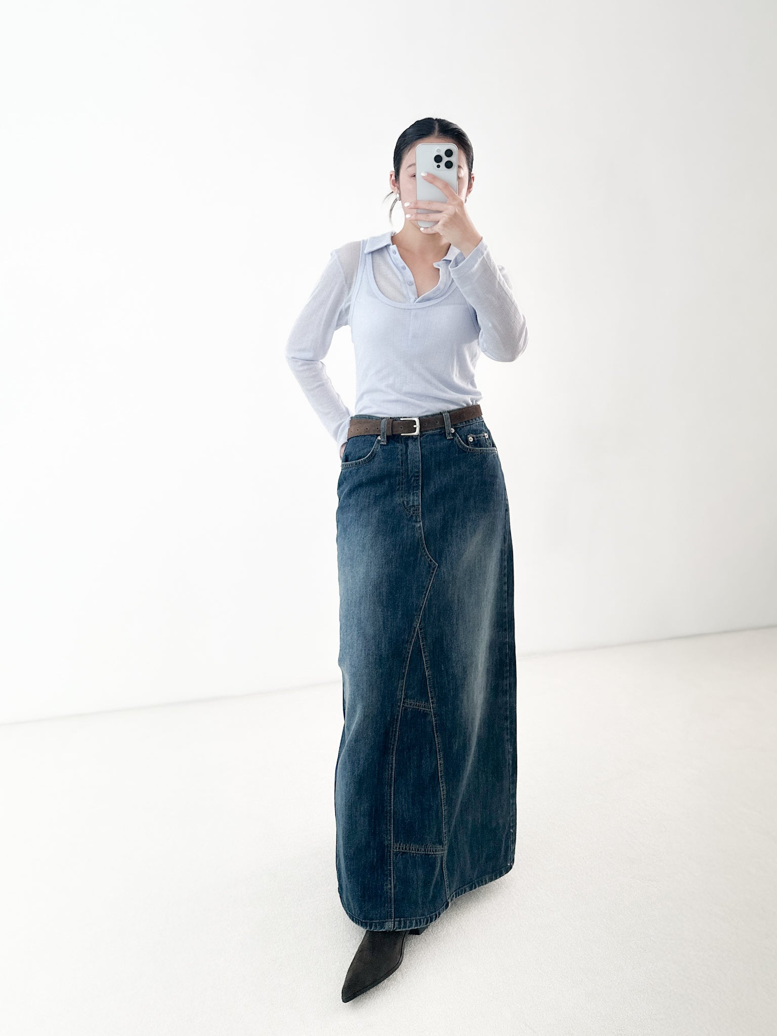 洗水深藍牛仔長裙