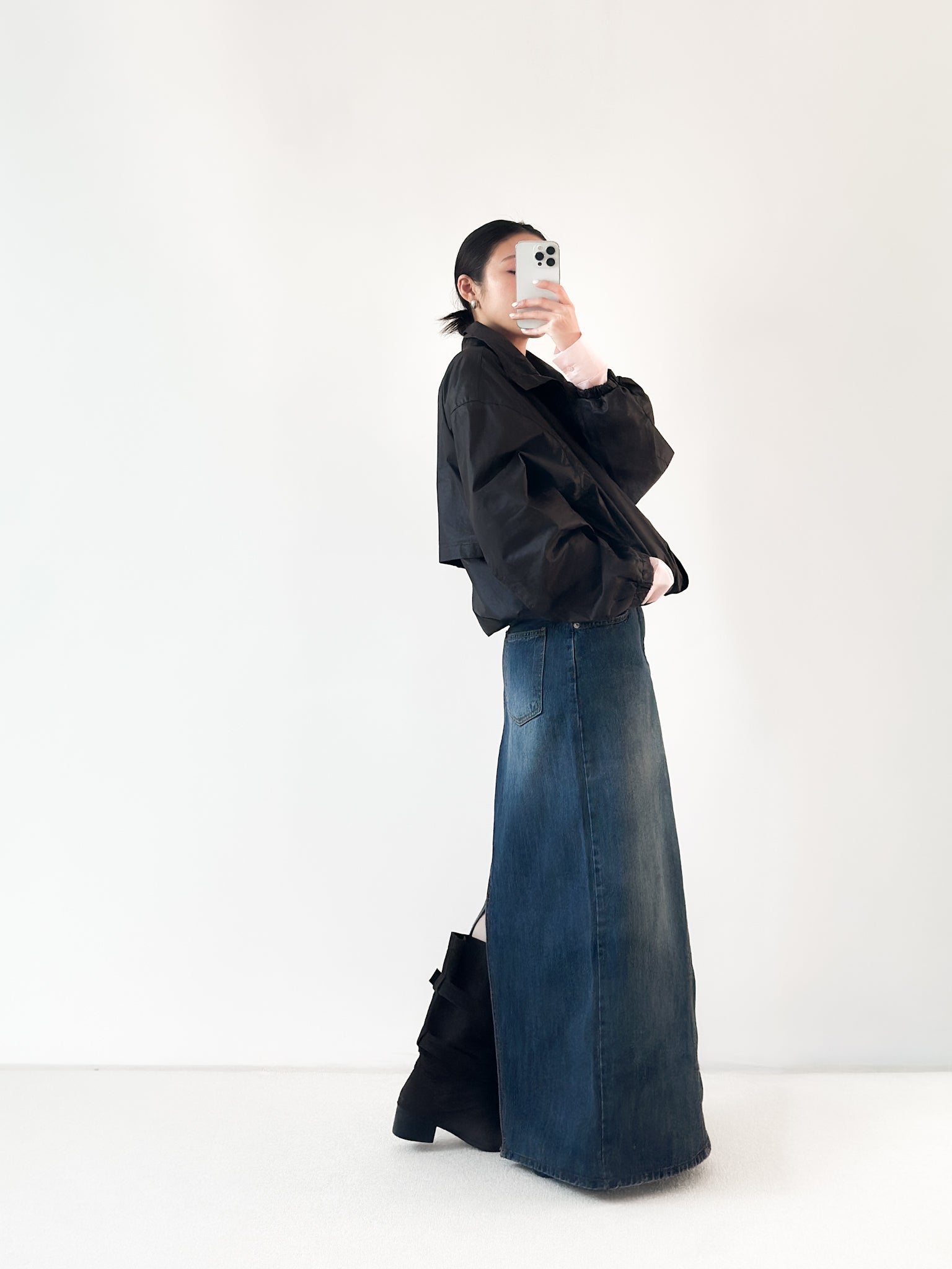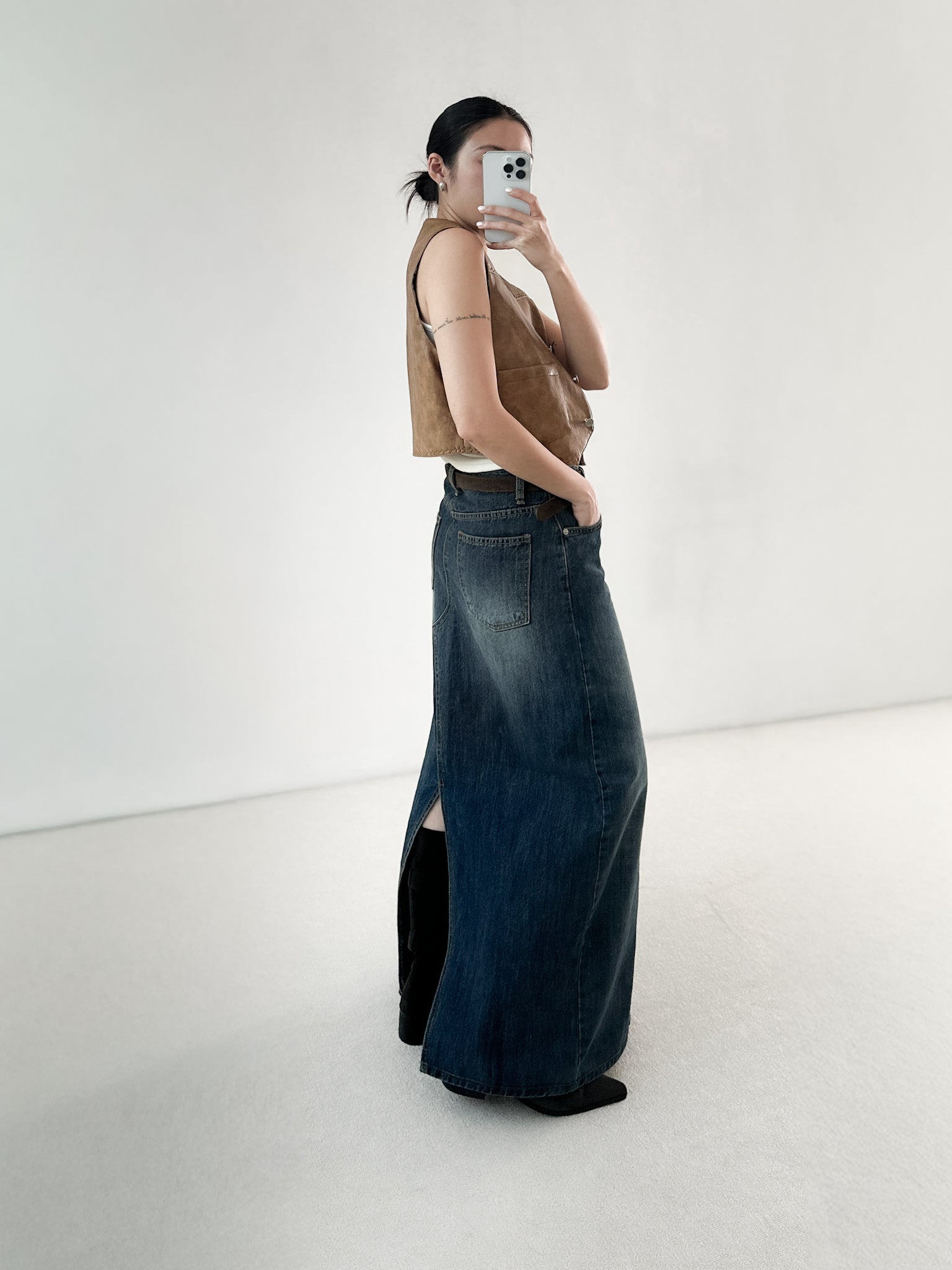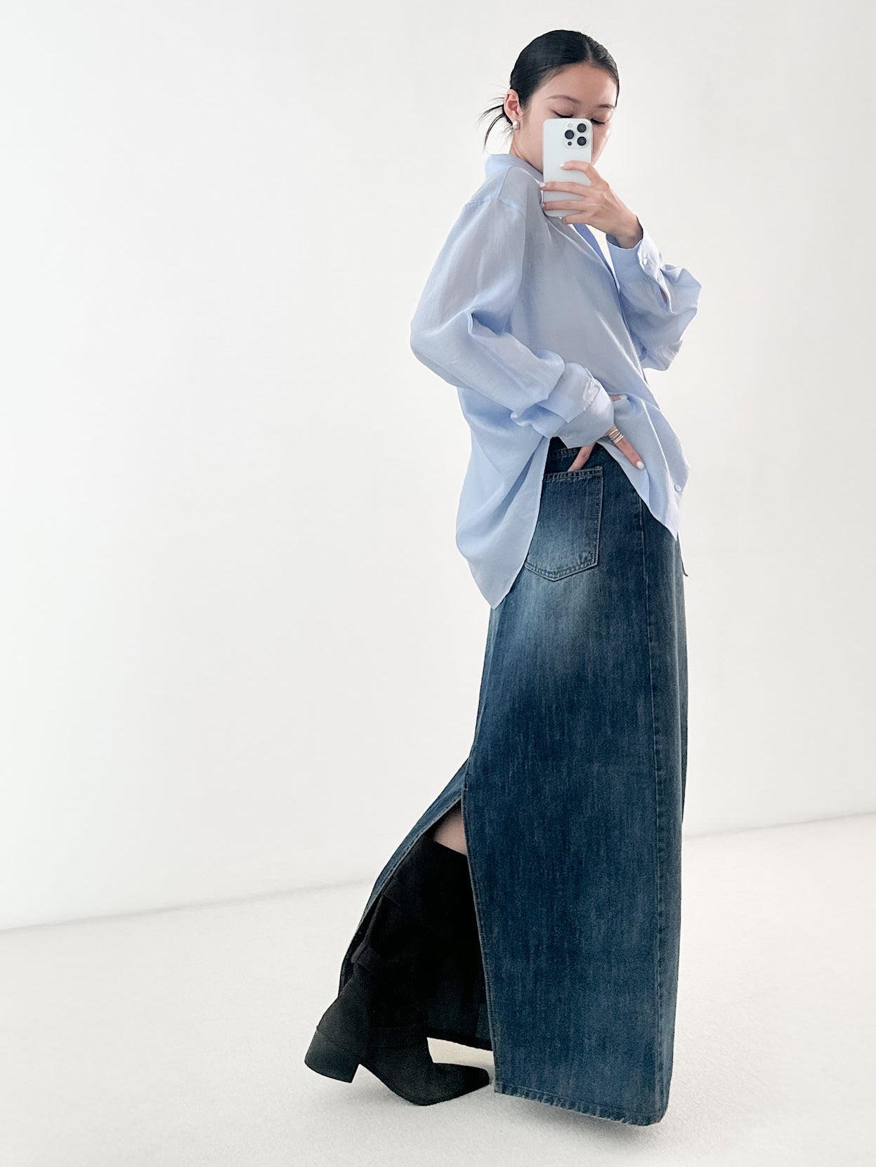 洗水深藍牛仔長裙 數量增加