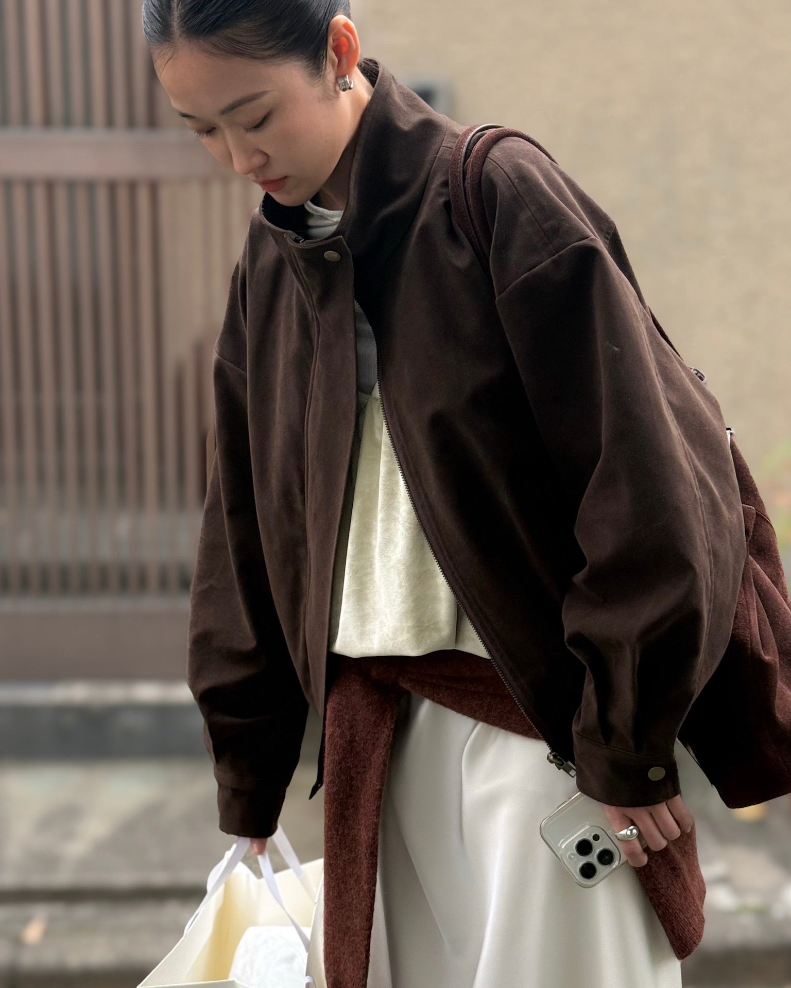 立體感企領麂皮外套 朱古力色