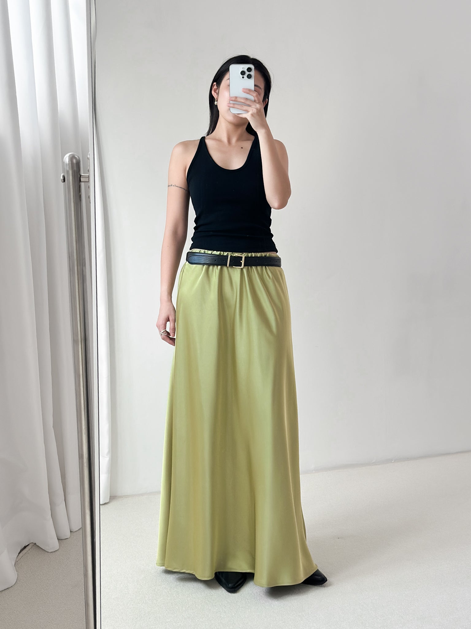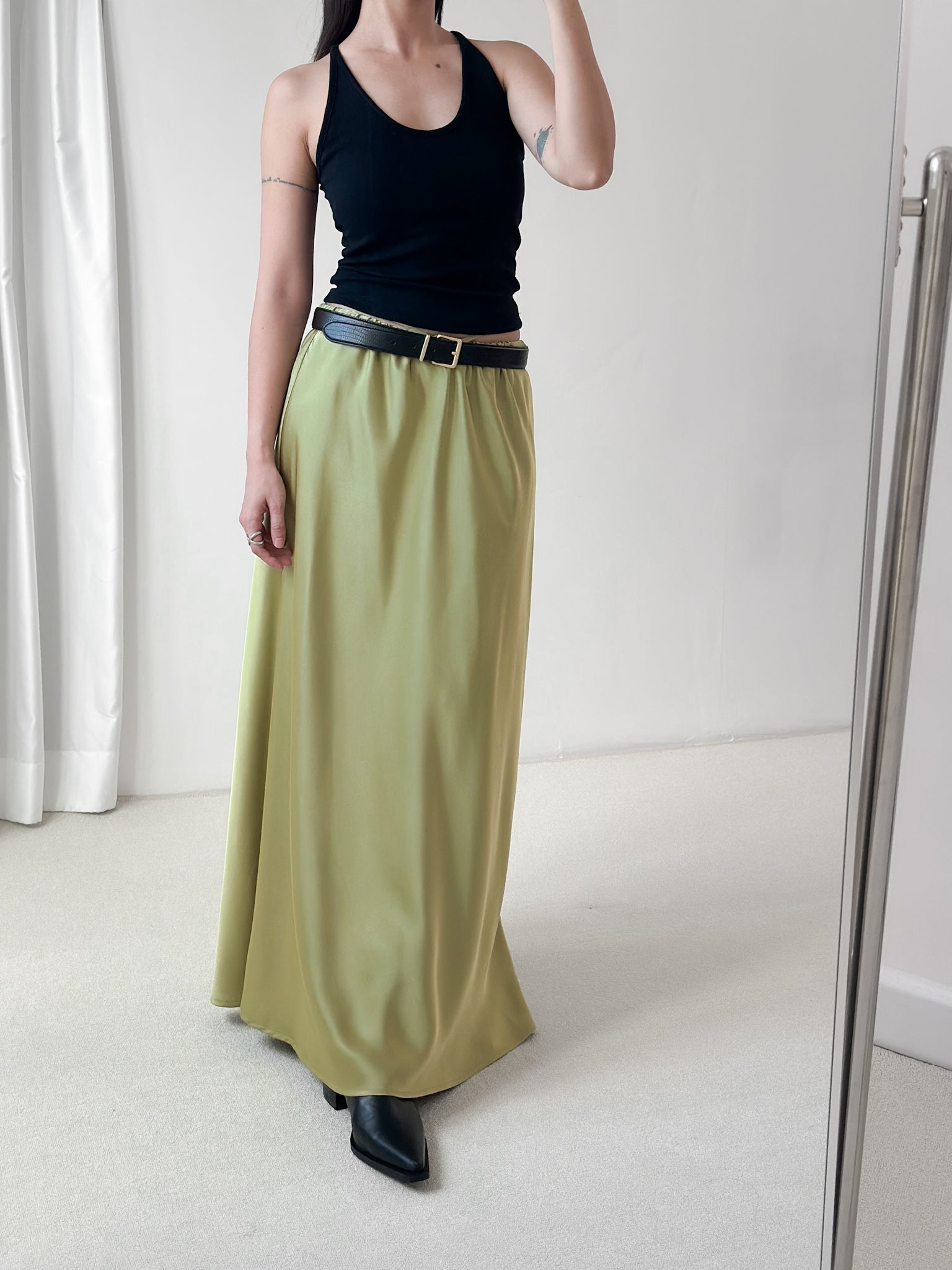 光澤緞面彈性魚尾裙 草綠色