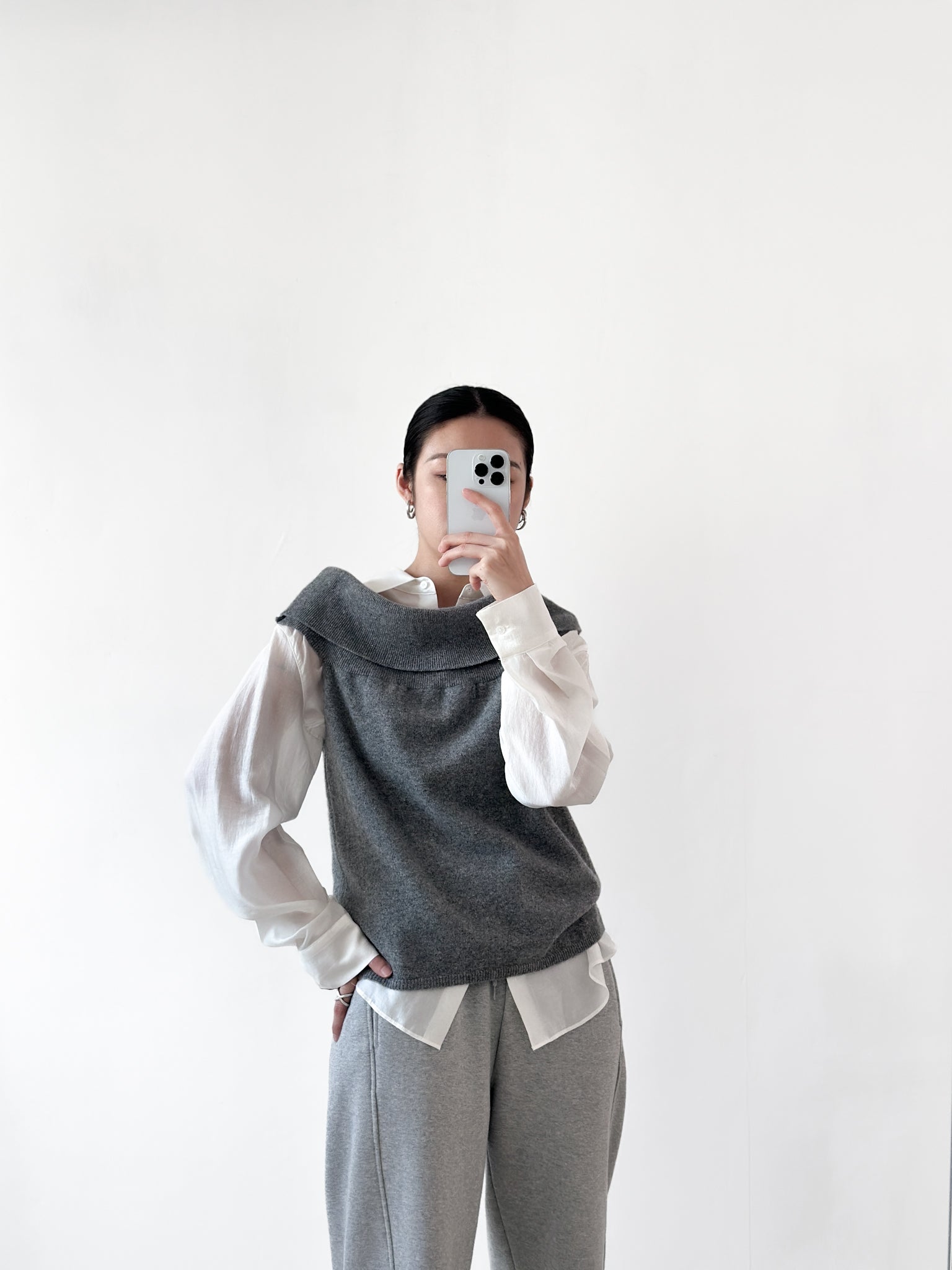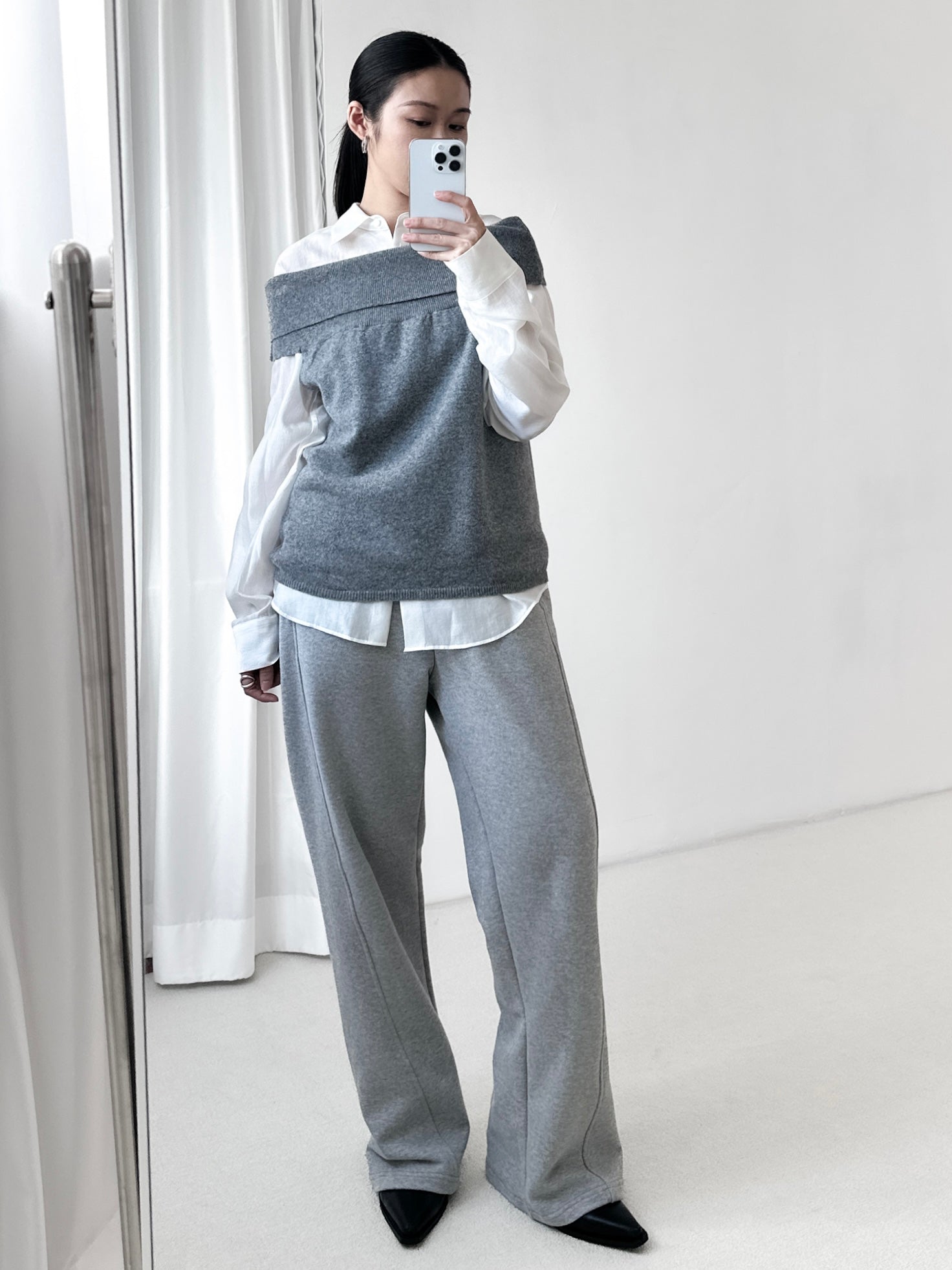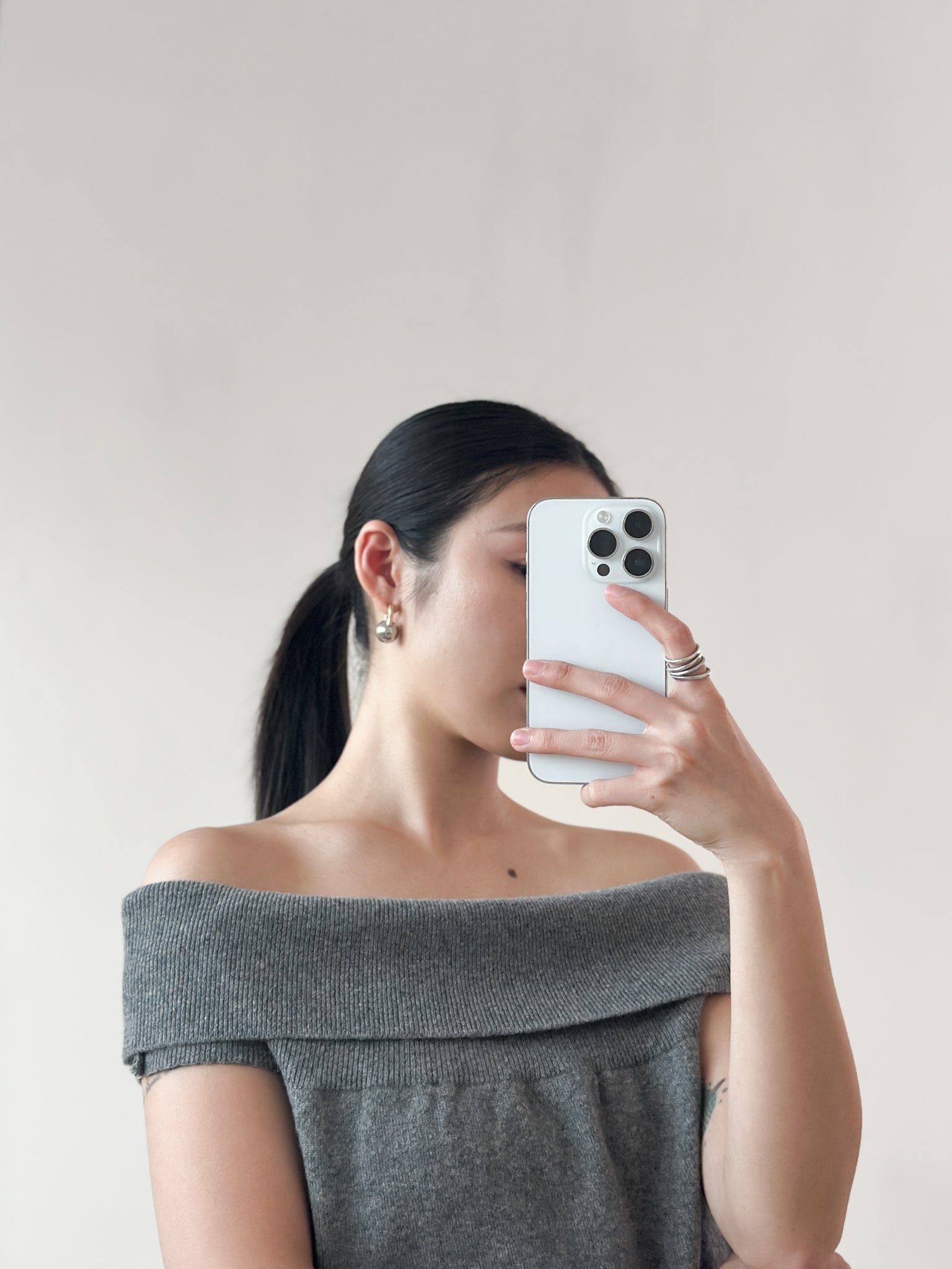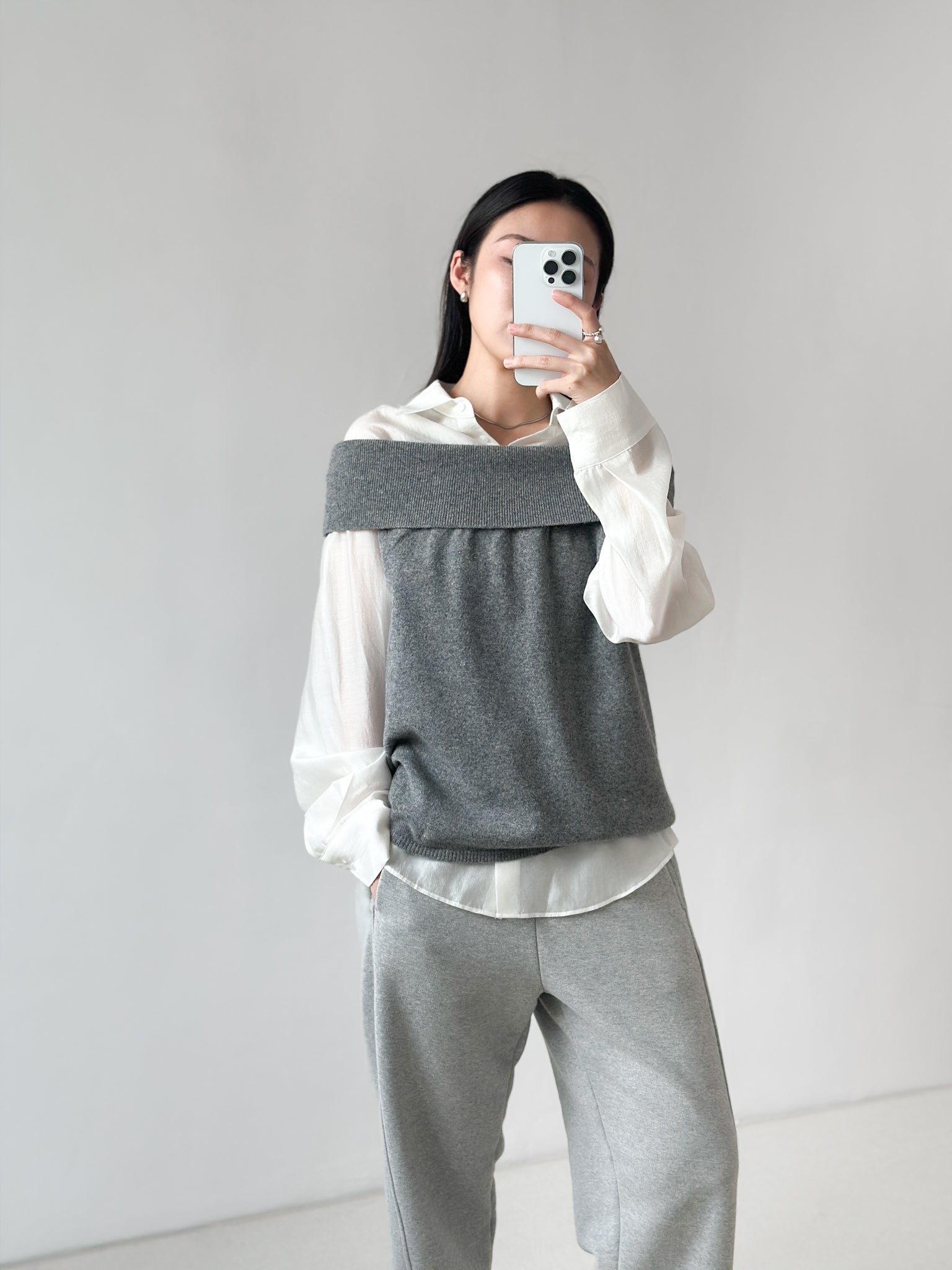 露肩薄羊毛上衣 灰色