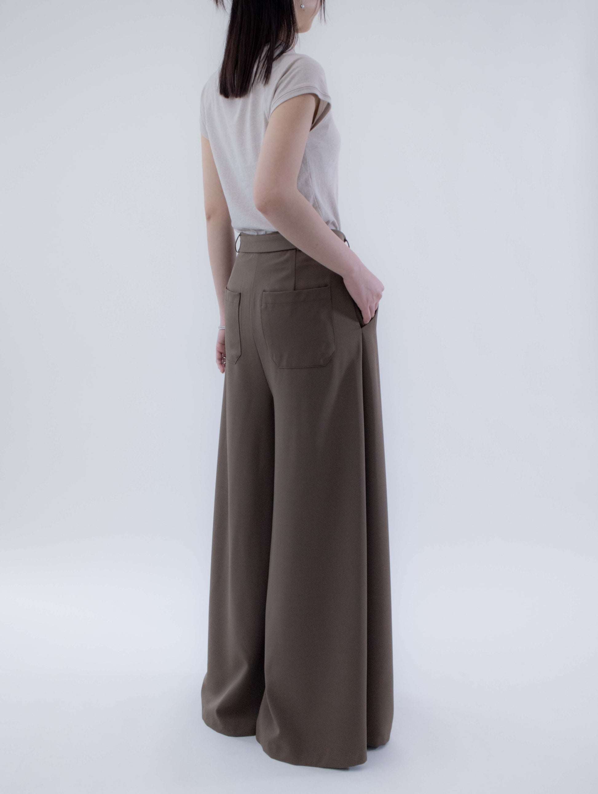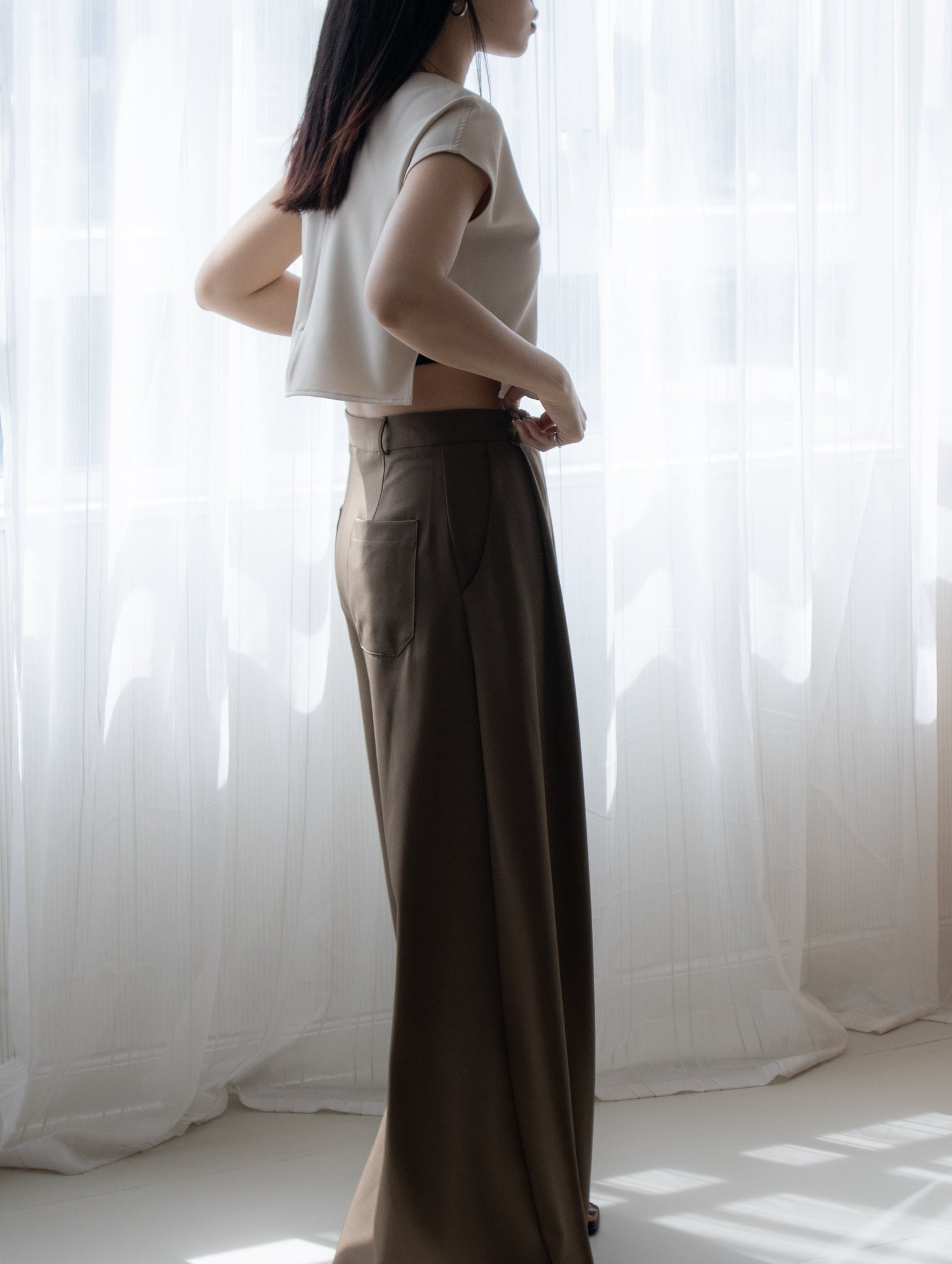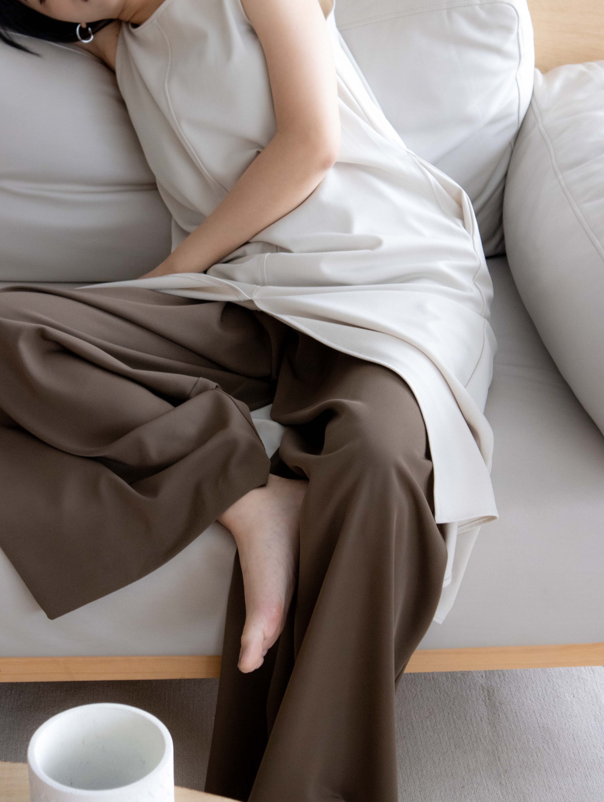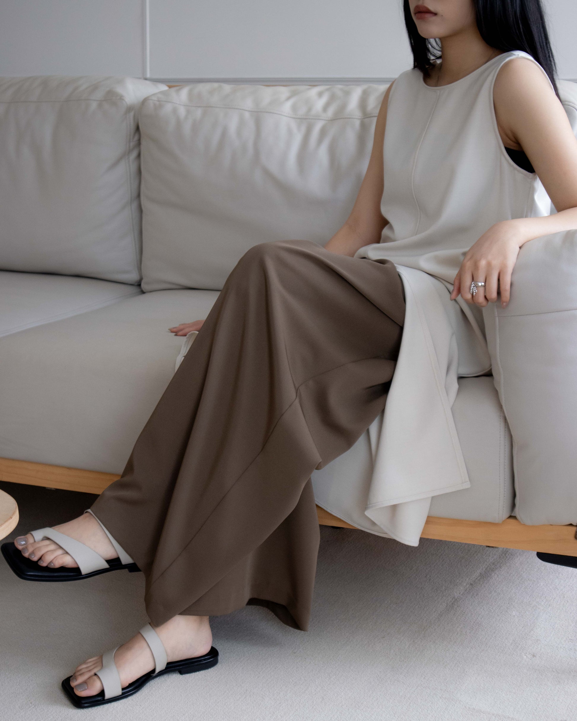 Élan 滑面微光澤西裝裙褲 (卡其啡)