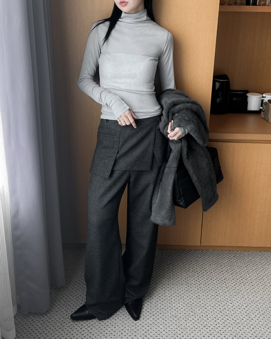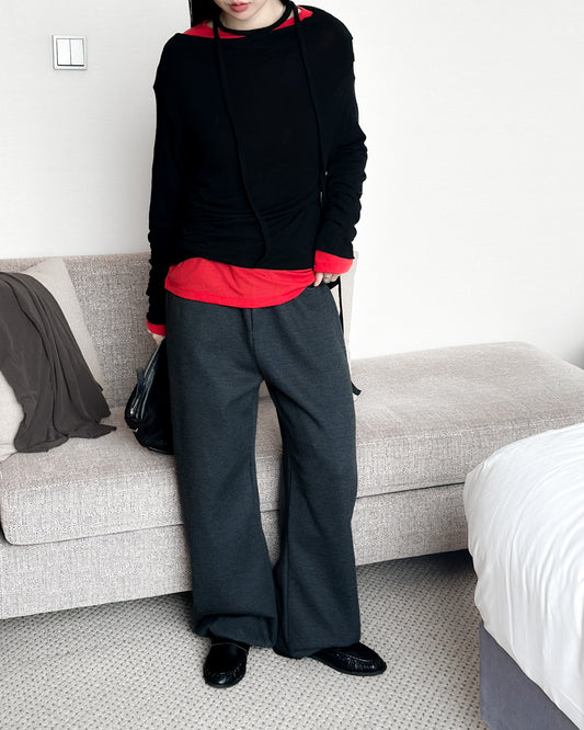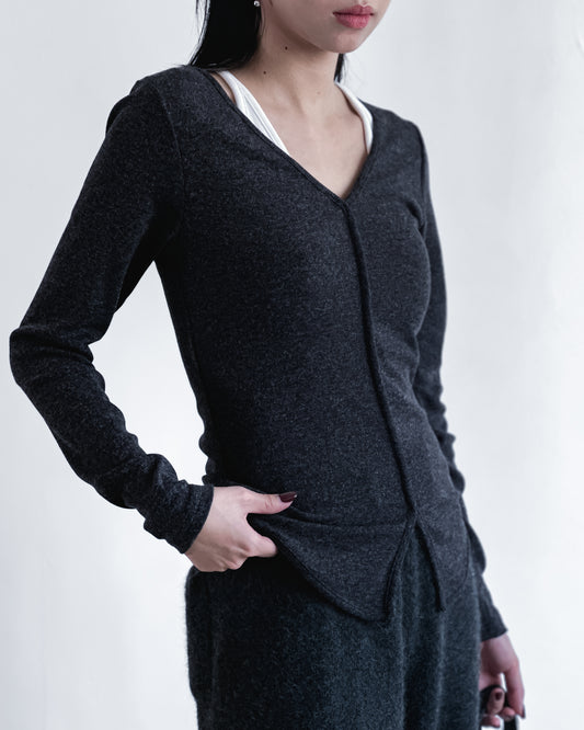 V領修腰彈性上衣 深灰色