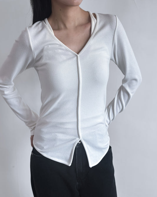 V領修腰彈性上衣 白色