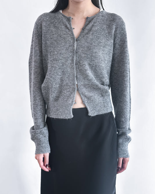 海馬毛混紡圓領薄外套 淺灰色