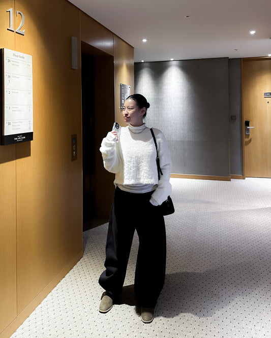 海馬毛混紡圓領薄外套 淺黃色