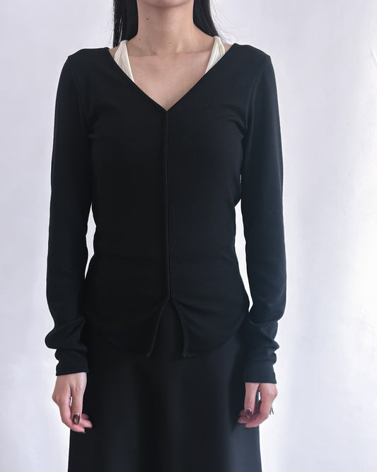 V領修腰彈性上衣 黑色