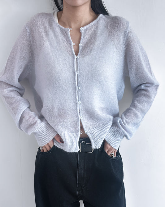 海馬毛混紡圓領薄外套 淺藍色